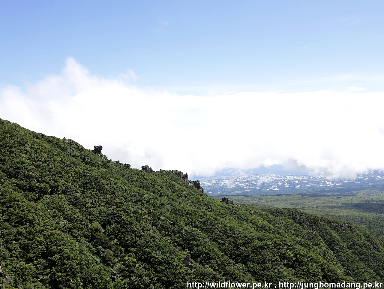 윗세오름에 도착!. 쉬지 않고 부지런히 남벽으로 전진합니다.