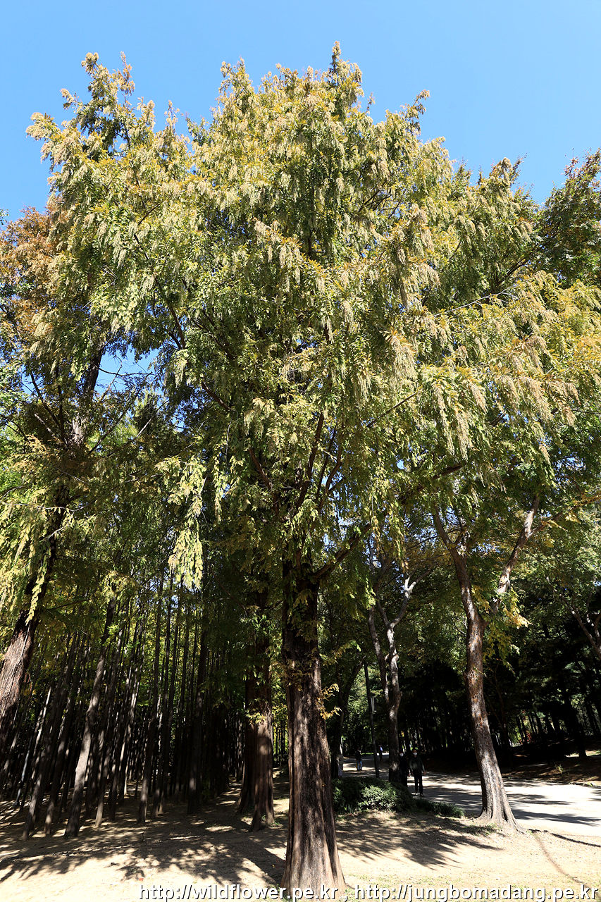 메타쉐콰이어, 좌측에 은행나무들이 있는 데, 이따가 둘러 보겠습니다.