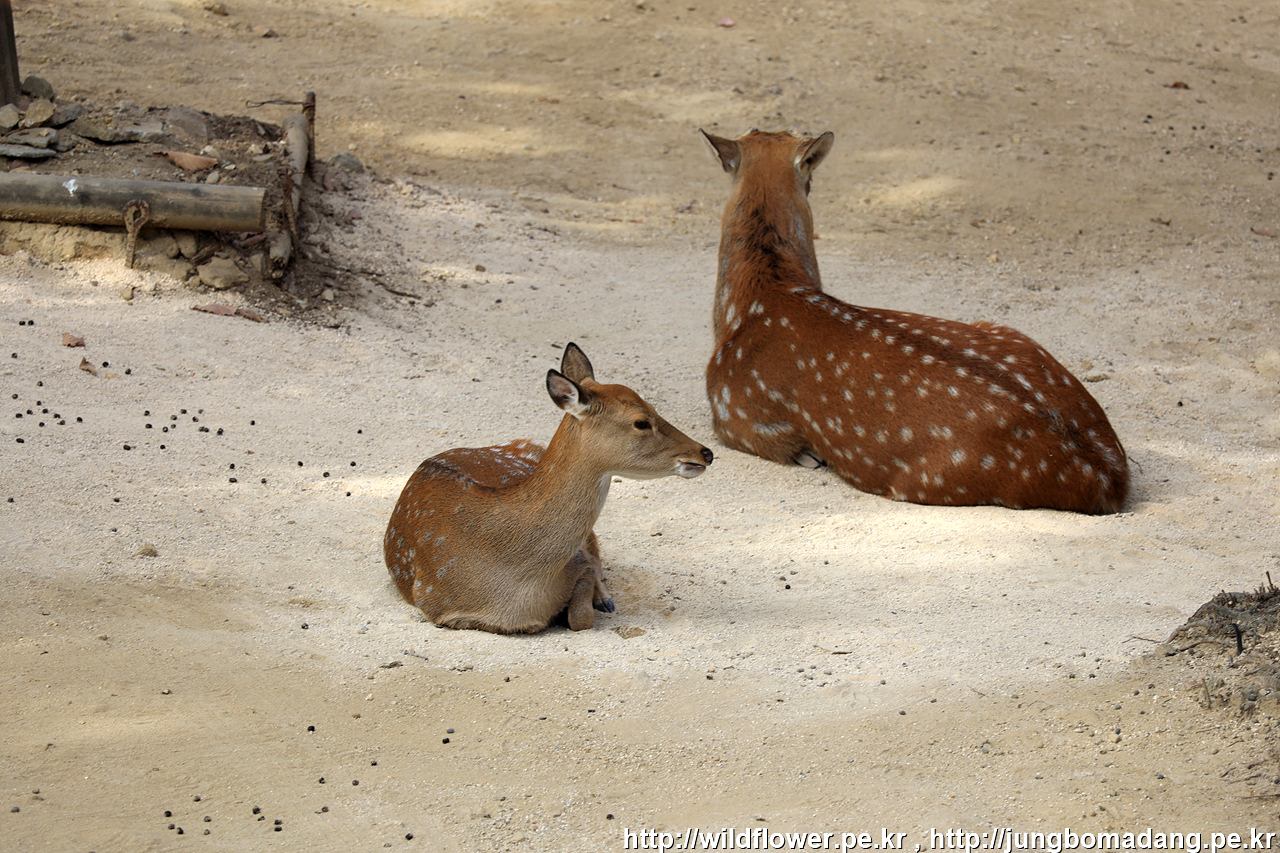 꽃사슴 방목장입니다. 방목장 주변에 울타리가 있어 윗쪽으로 지난 다리 위에서 몇 컷 담아 봅니다.