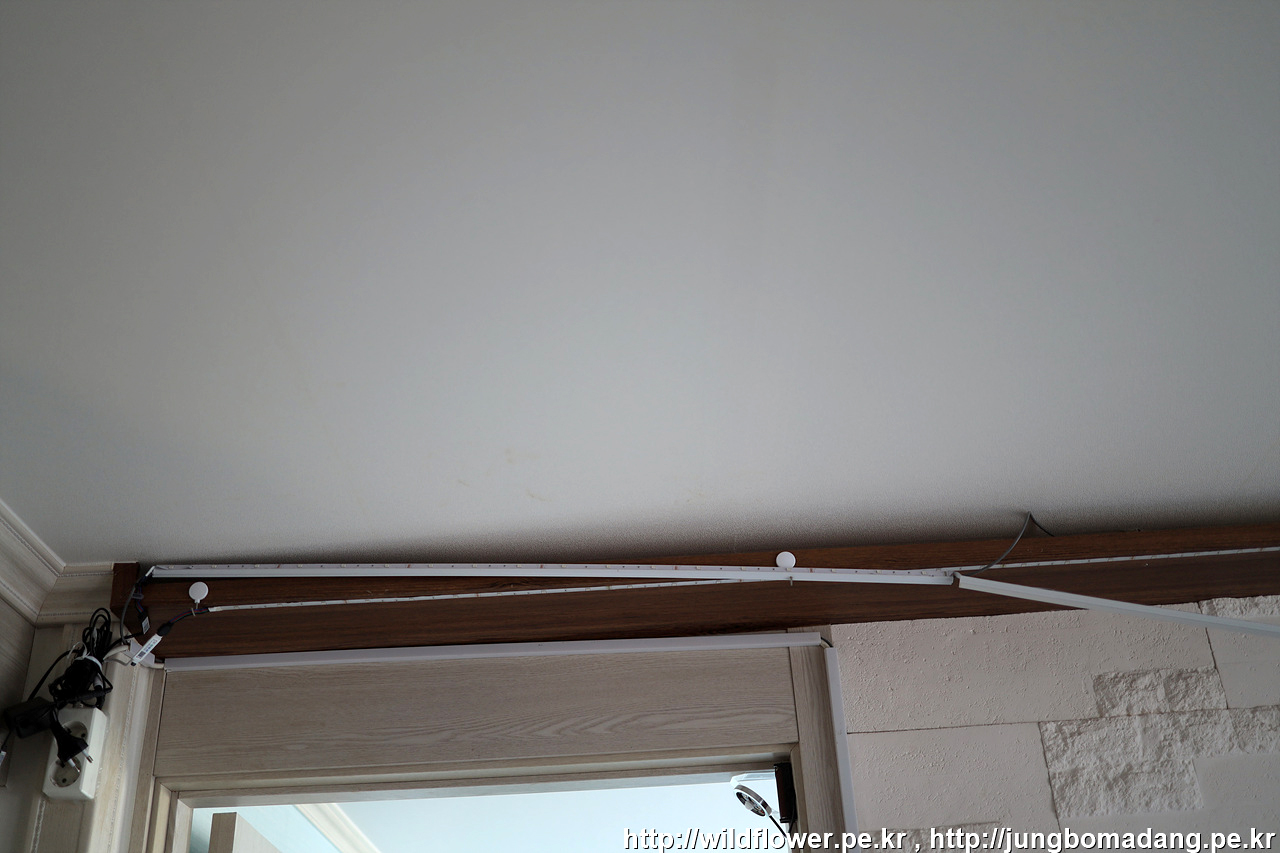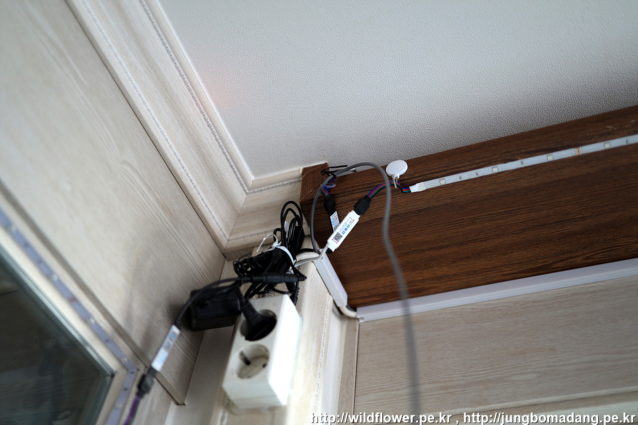 예전에 설치된 몰딩에 홈을 파서 그 안을 통해 천정에 간접등 설치된 곳을 통해 연결할 계획입니다.