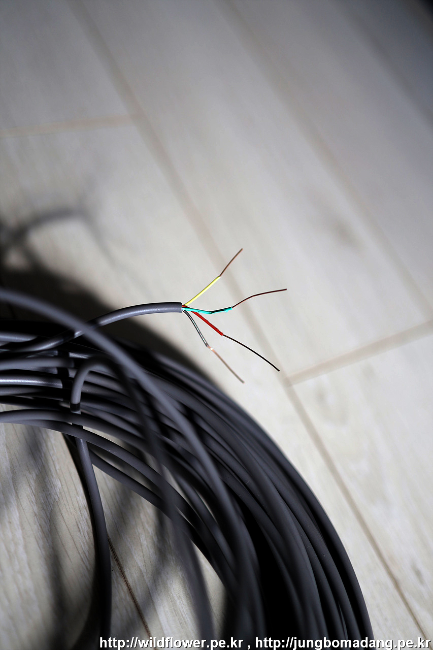 인터폰선 2P는 아래와 같이 4가닥으로 각각 색상으로 구분되어 있고, 전선 한가닥 안에는 구리선이 여러 가닥이 아닌 한가닥씩으로 되어 있습니다.
