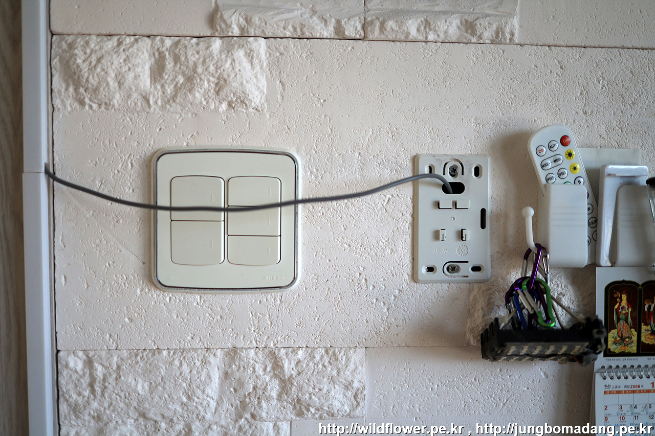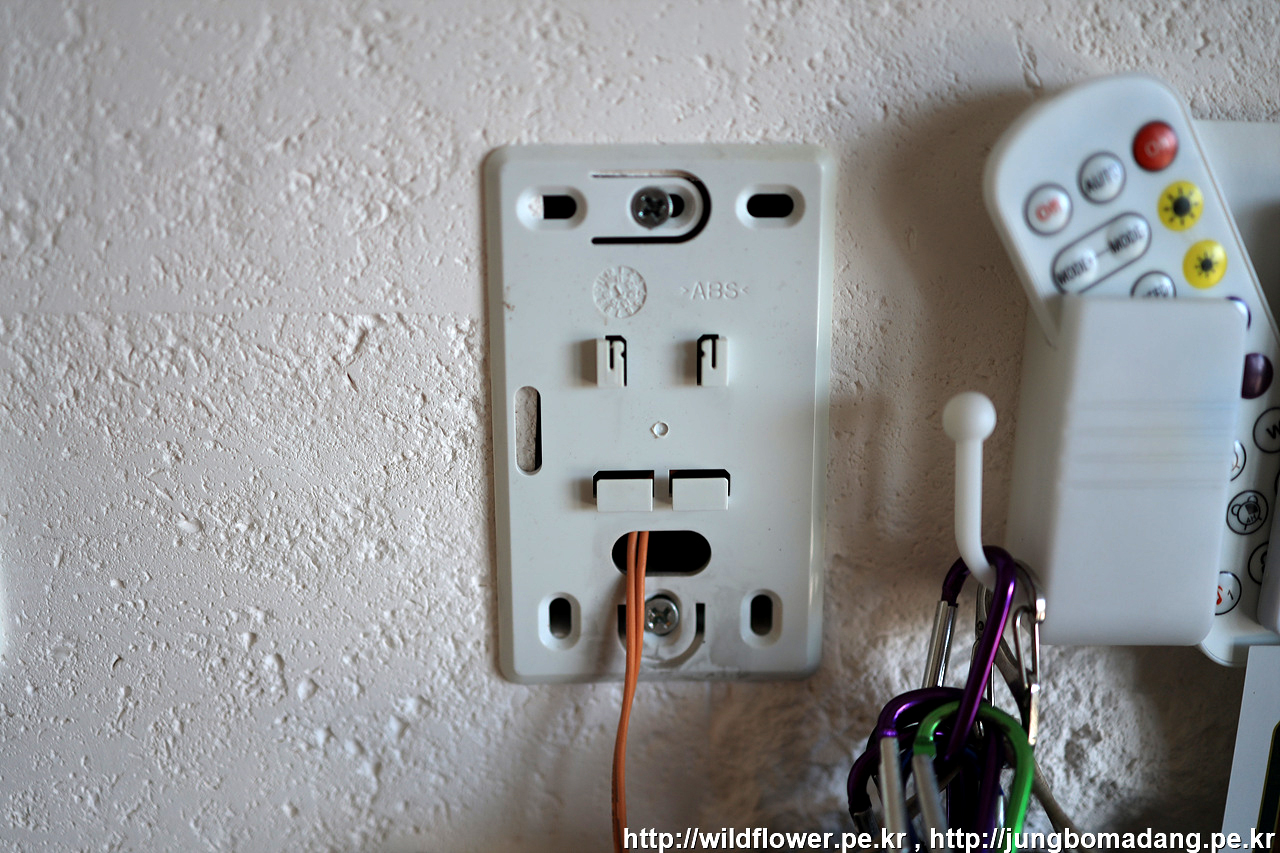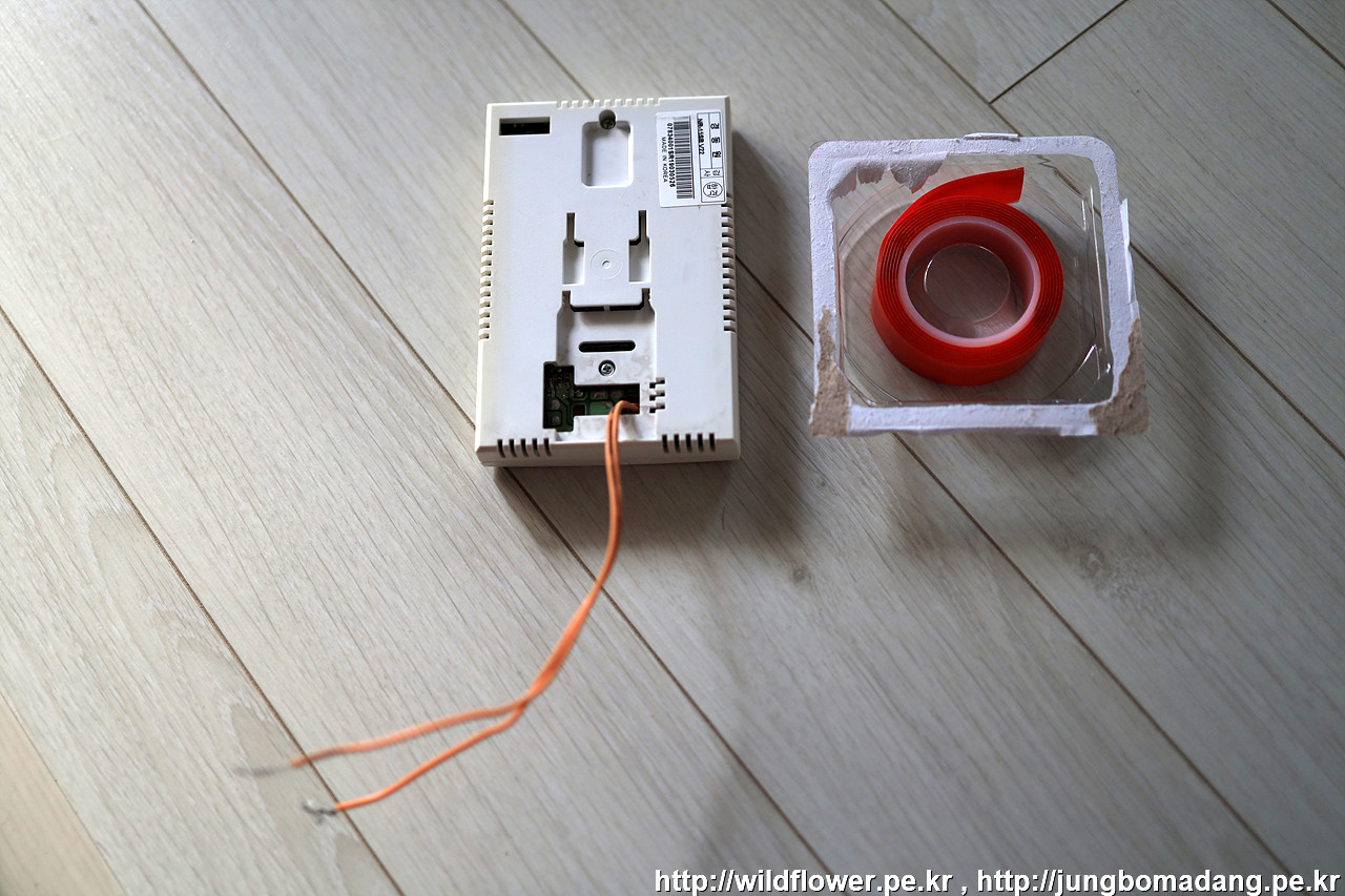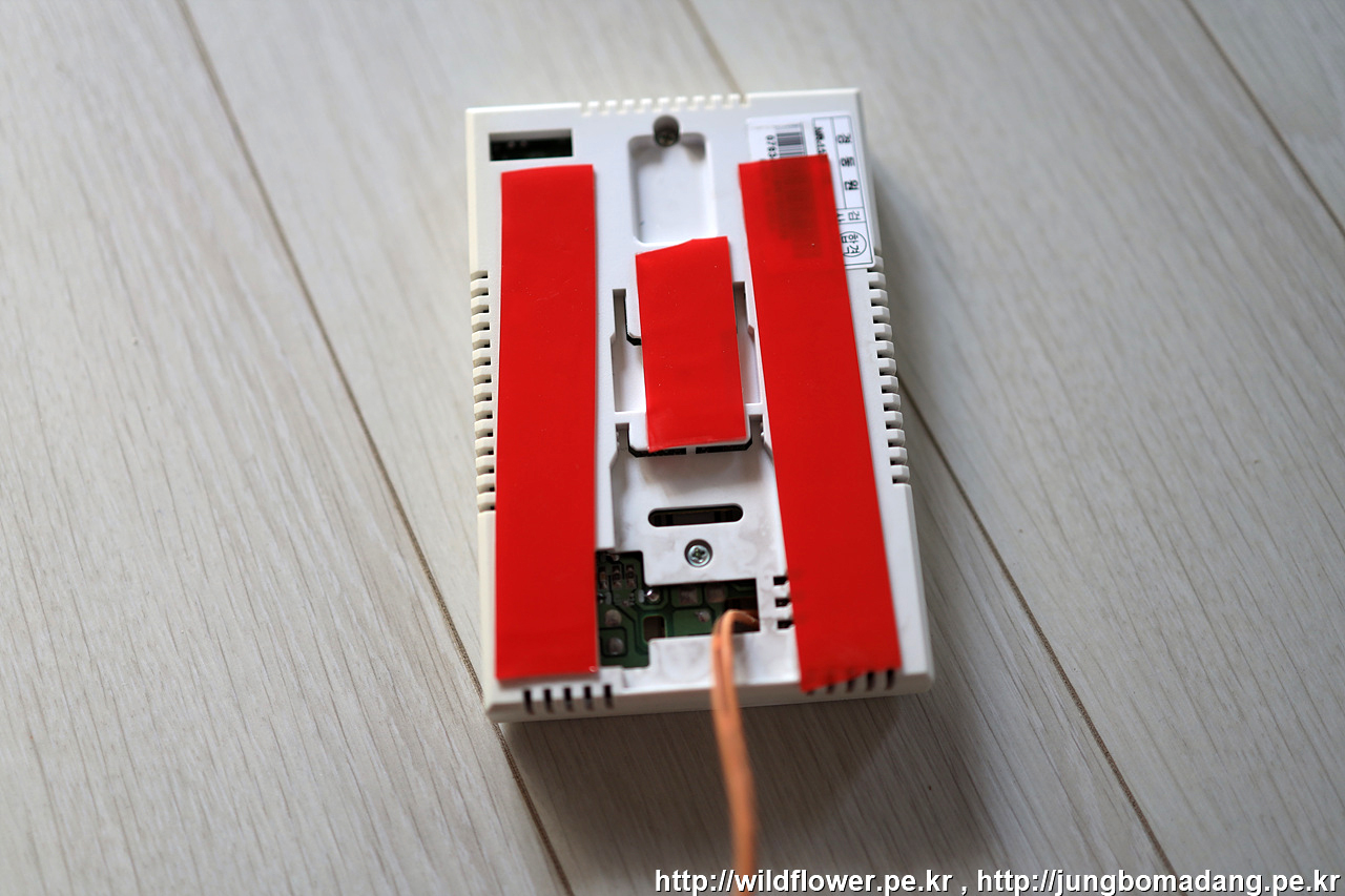 기존 온도조절기 쪽을 마무리하기 위해, 거치대를 기존대로 인터폰선 안에 넣고