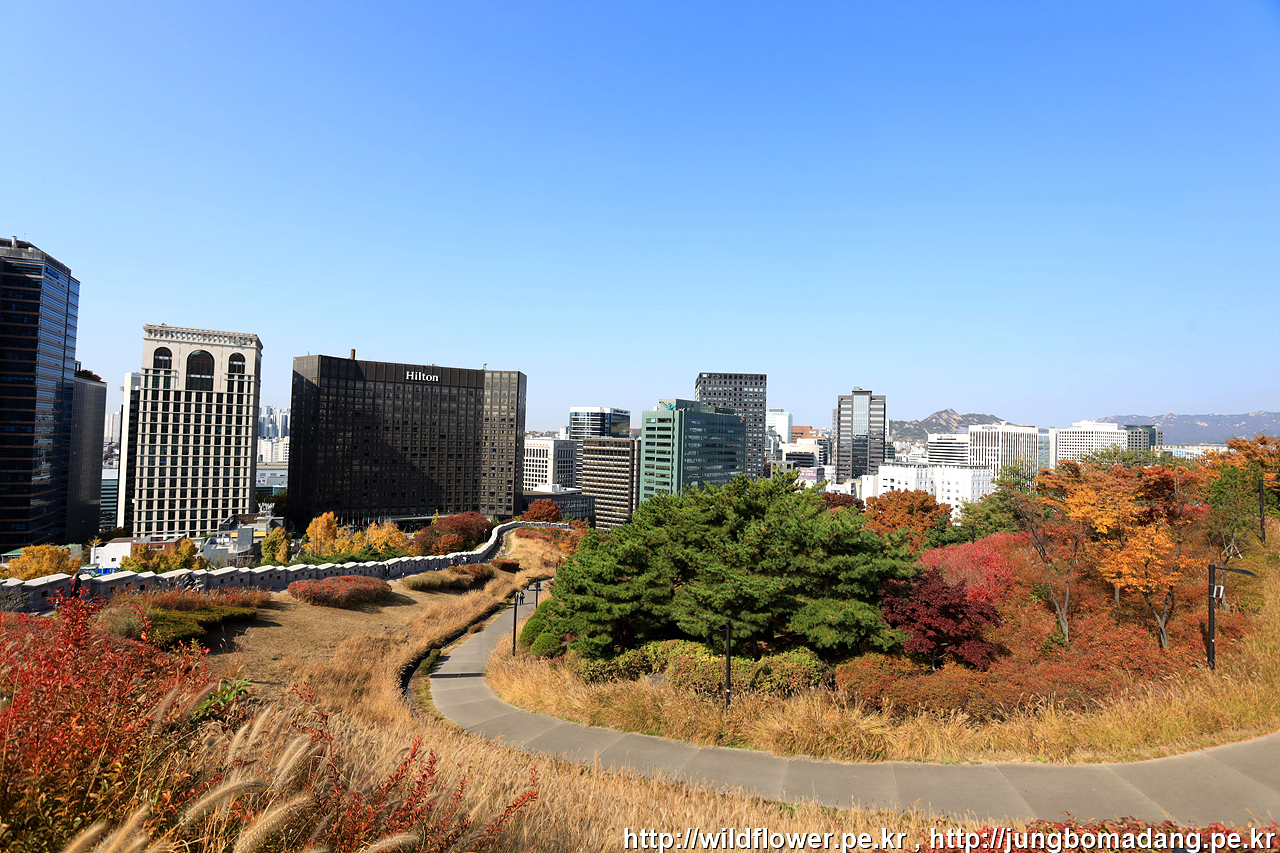 팔각정 앞 풍경. 우측으로 남산서울타워.