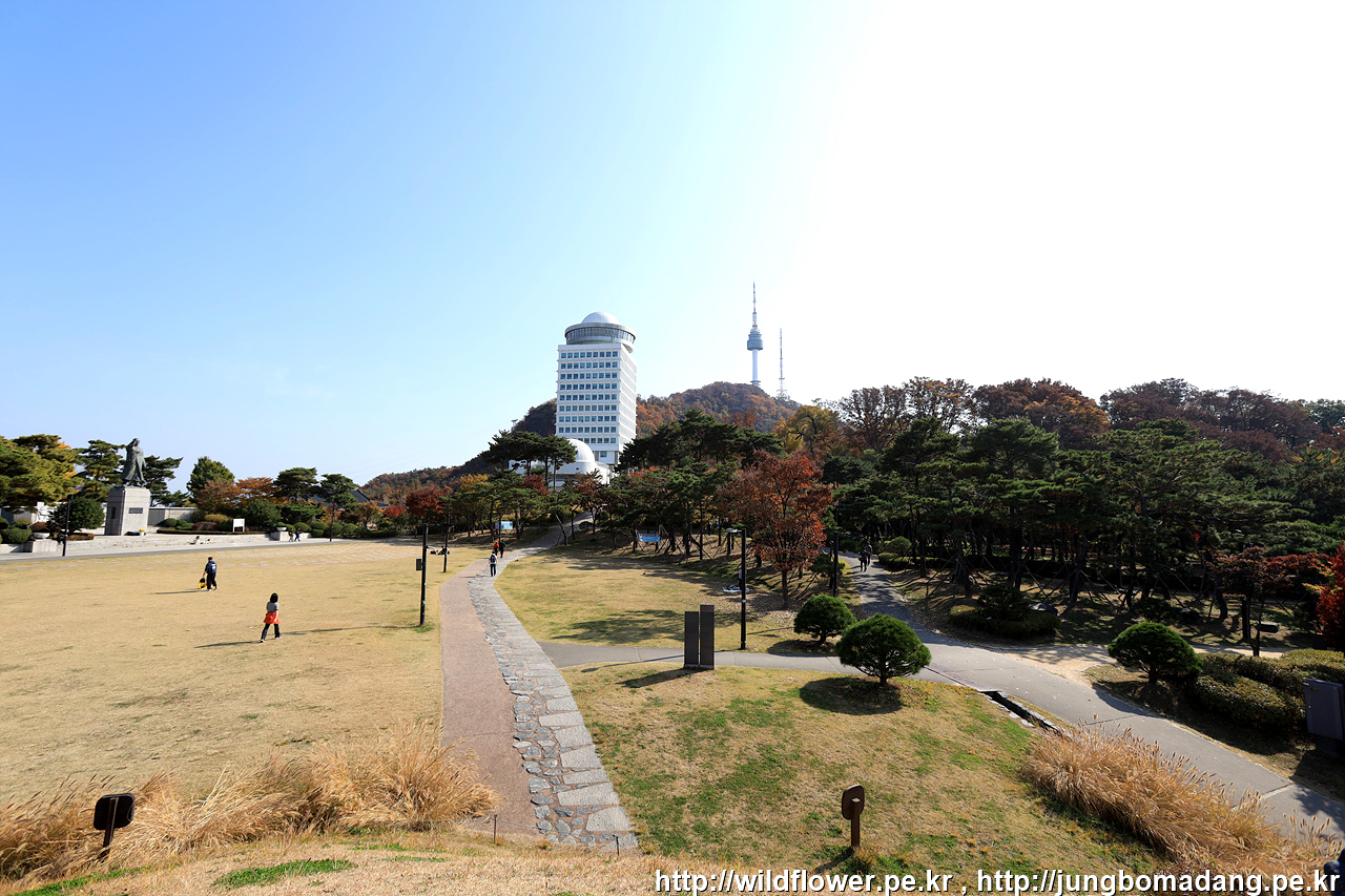 백범광장 - 전방에 남산도서관, 뒤로 남산서울타워가 보입니다.