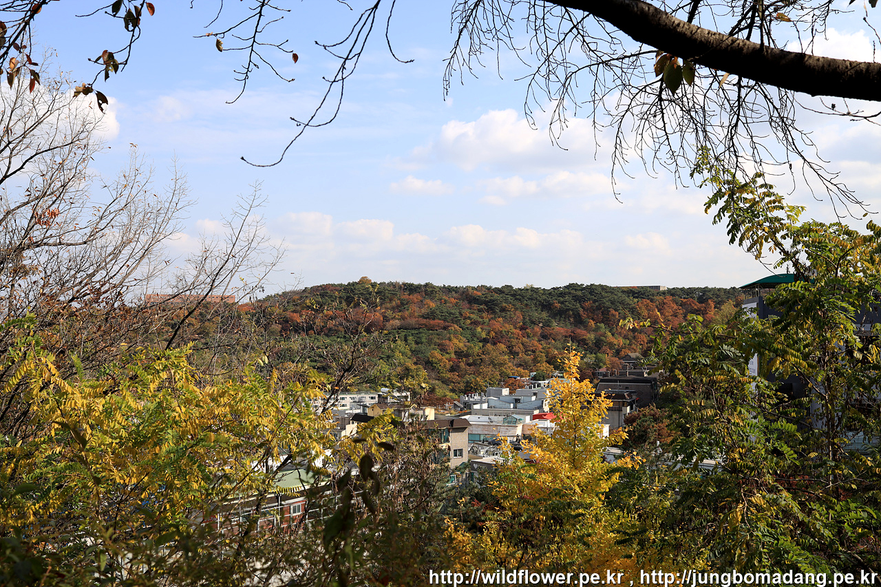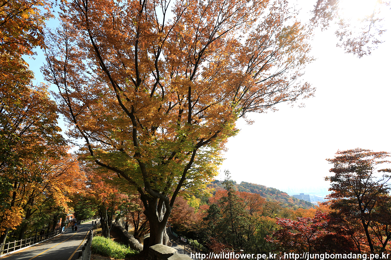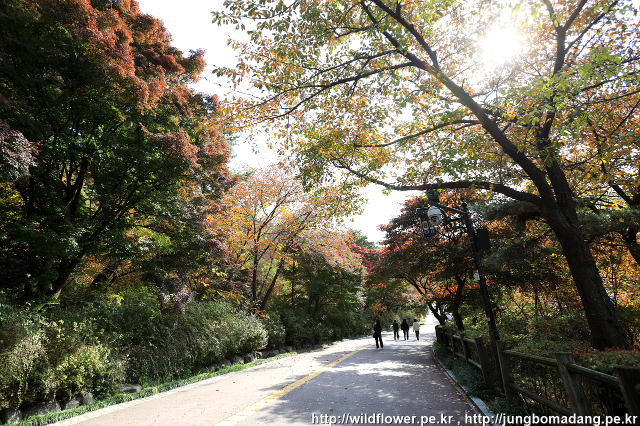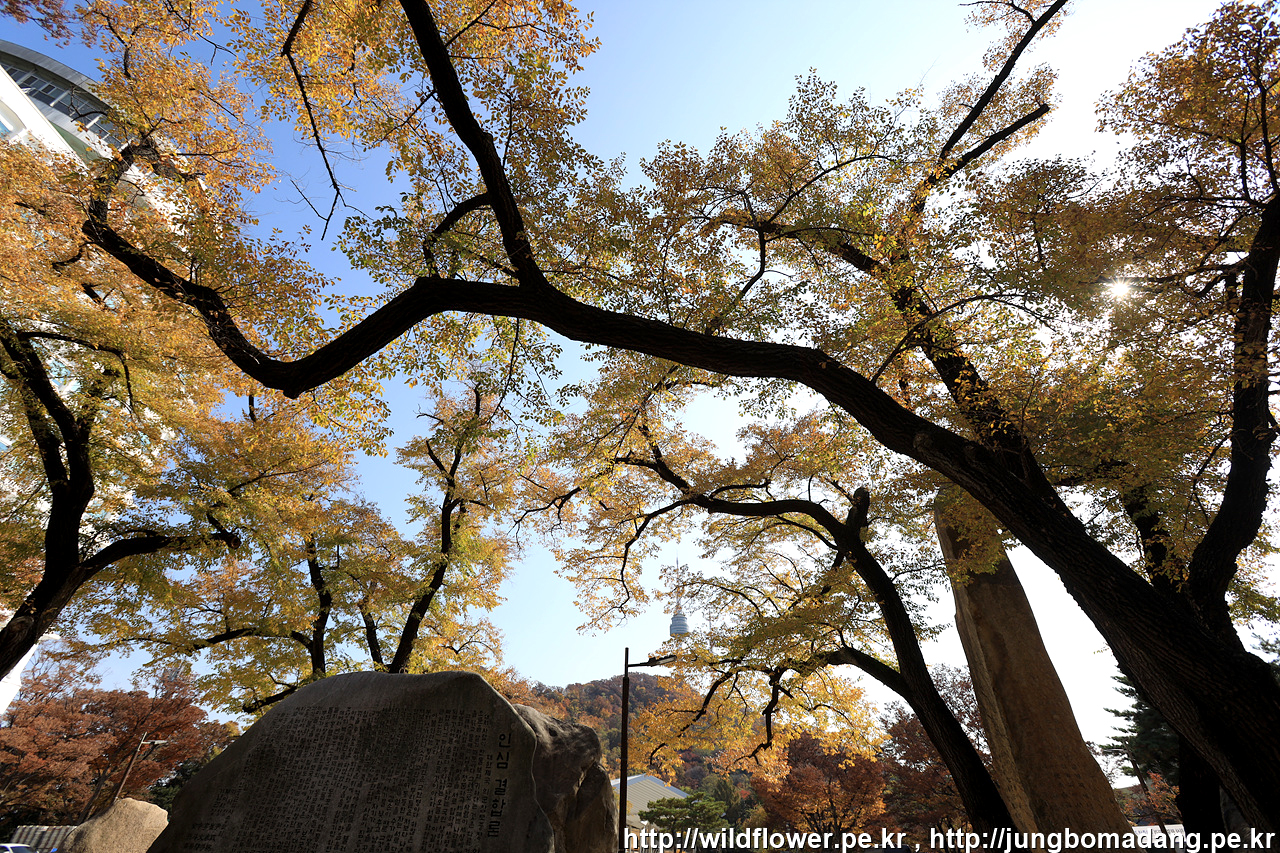 은행나무가 노랗게 물 들었습니다. 아래쪽으로 내려가면 남산골한옥마을로 내려갈 수 있으나, 본인은 북측 순환산책로따라 와룡묘, 목멱산방 방향으로 계속 진행합니다.