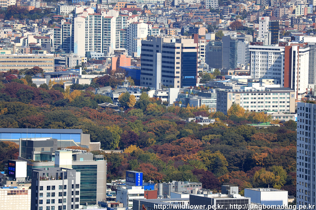팔각정 앞 풍경. 우측으로 남산서울타워.