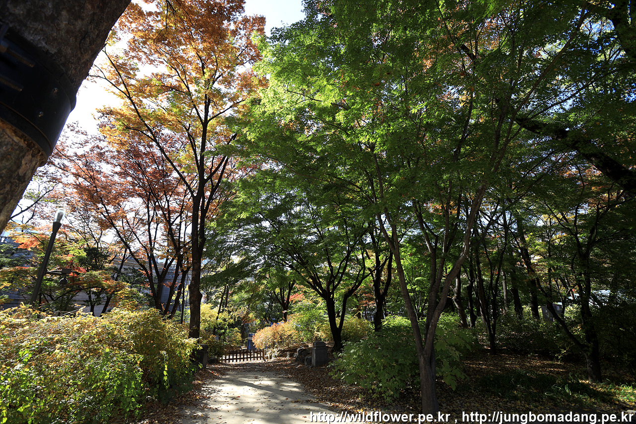 유난희도 알록 달록한 나무(좌)는 복자기, 상단에 초록빛은 회화나무
