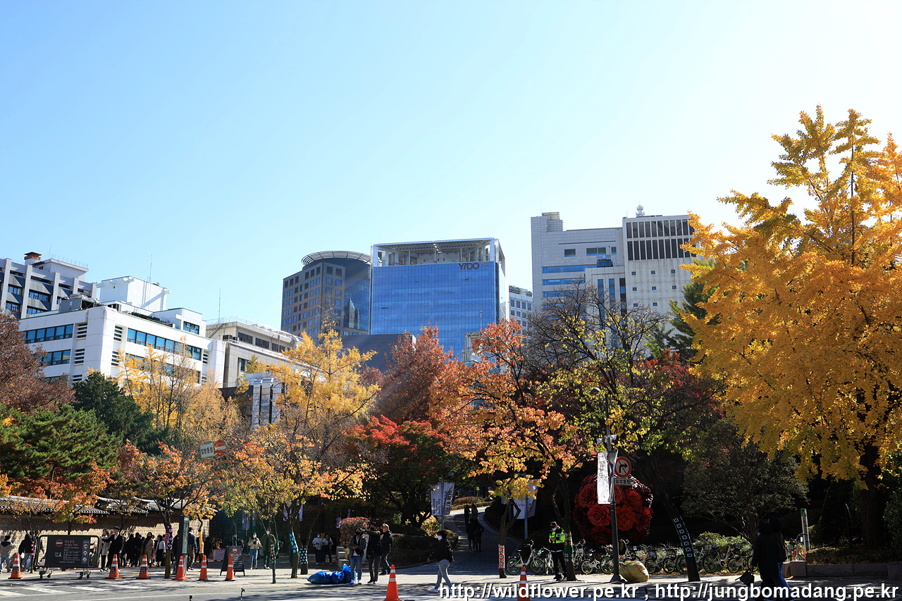 덕수궁길 주변을 둘러 봅니다. 노란 은행나무 사이 좌측에 보호수로 지정된 회화나무도 보입니다. 수령이 2022년 기준 544년입니다.