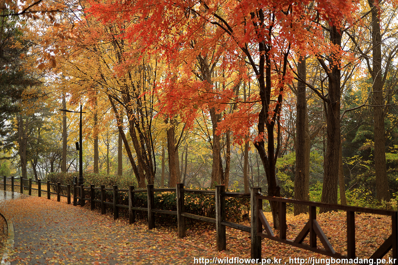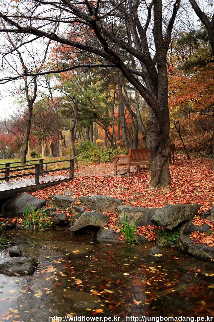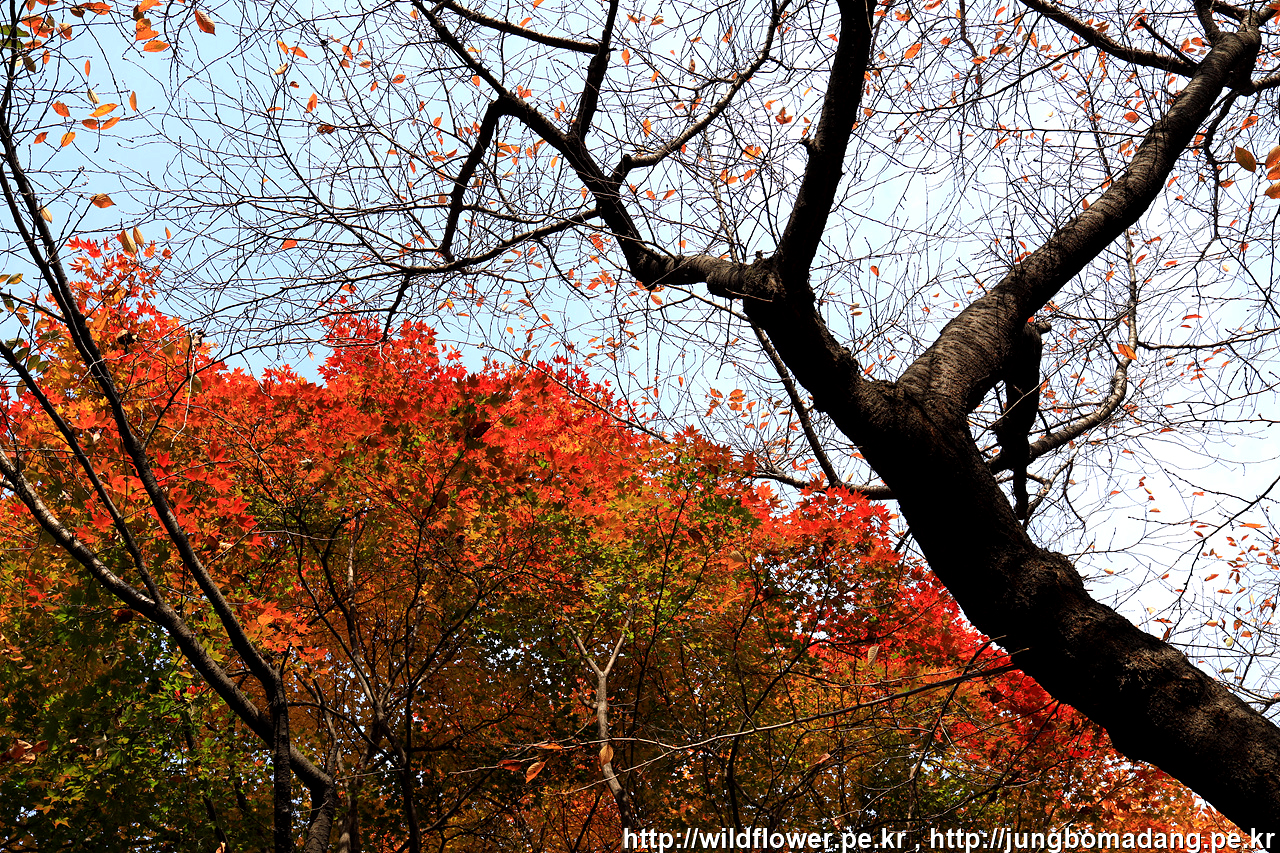 삼각지역으로 이동하기 위해 하산 중에 발견한 단풍. 비가 내리고 바람이 불어 잎이 제법 떨어지지만 사진으로 표현이 안되네요.