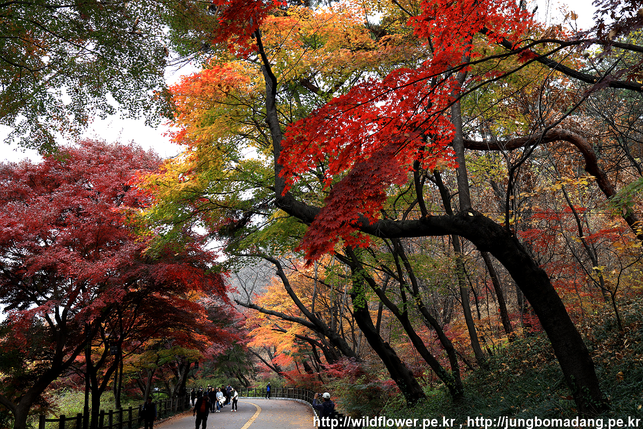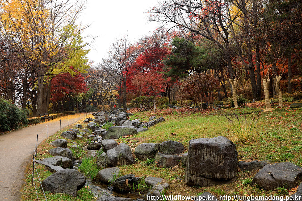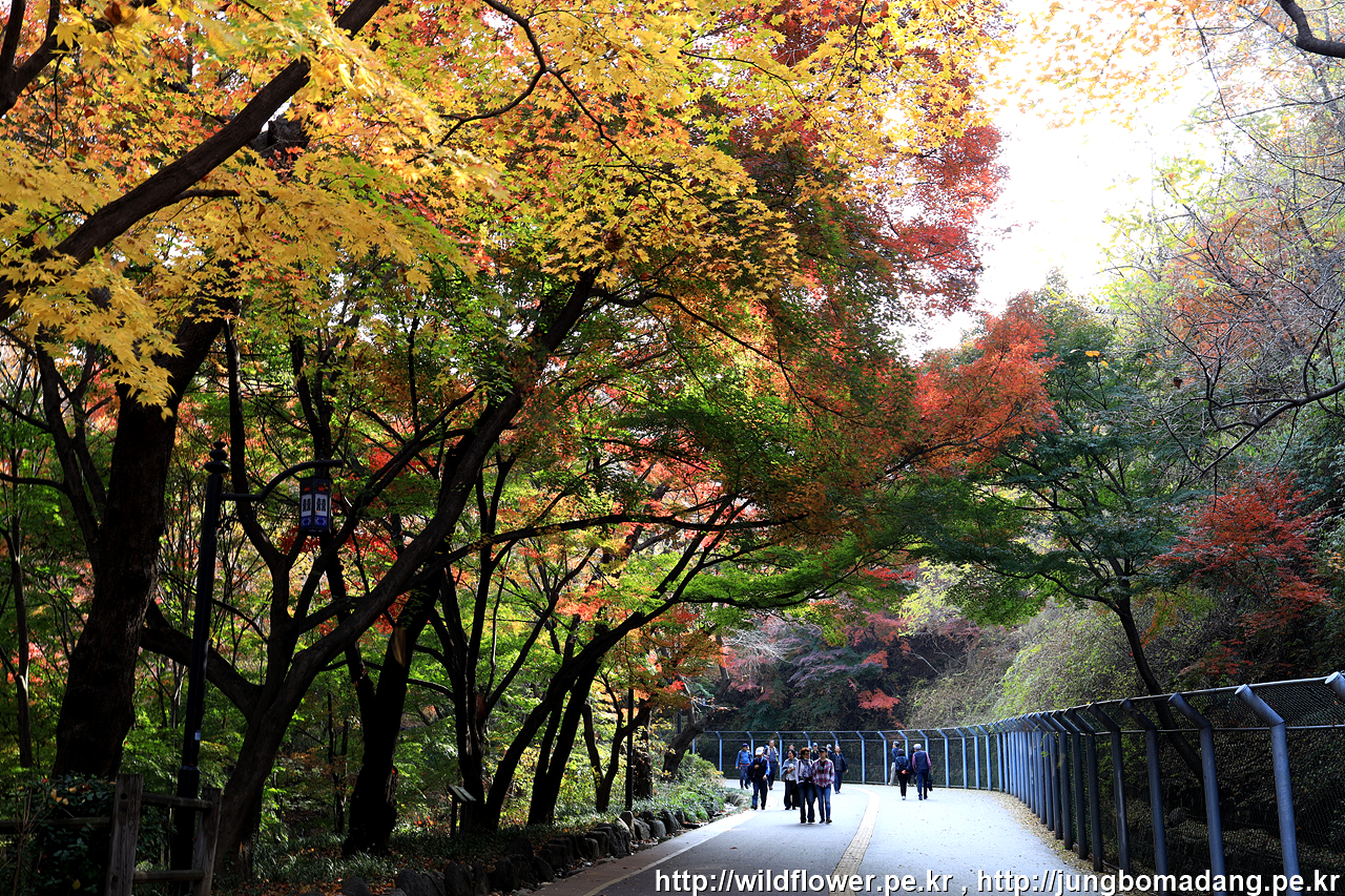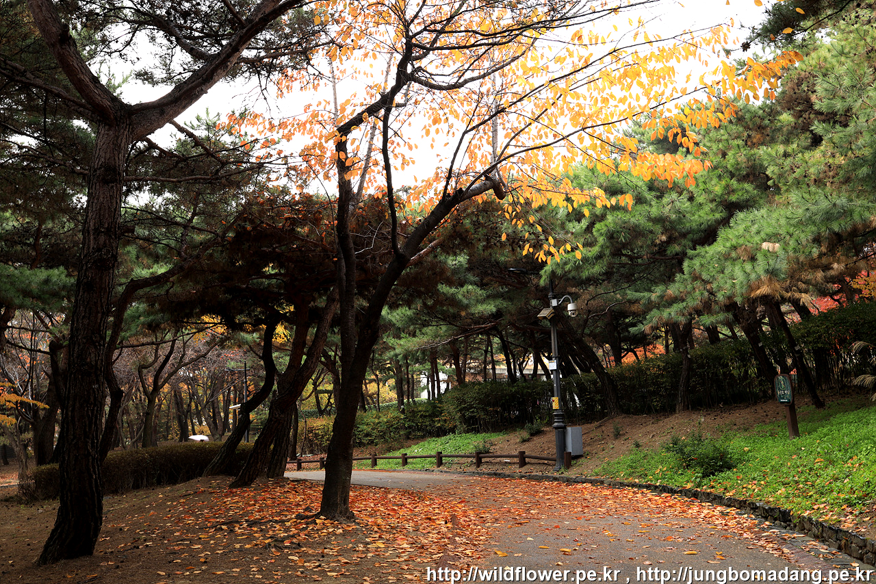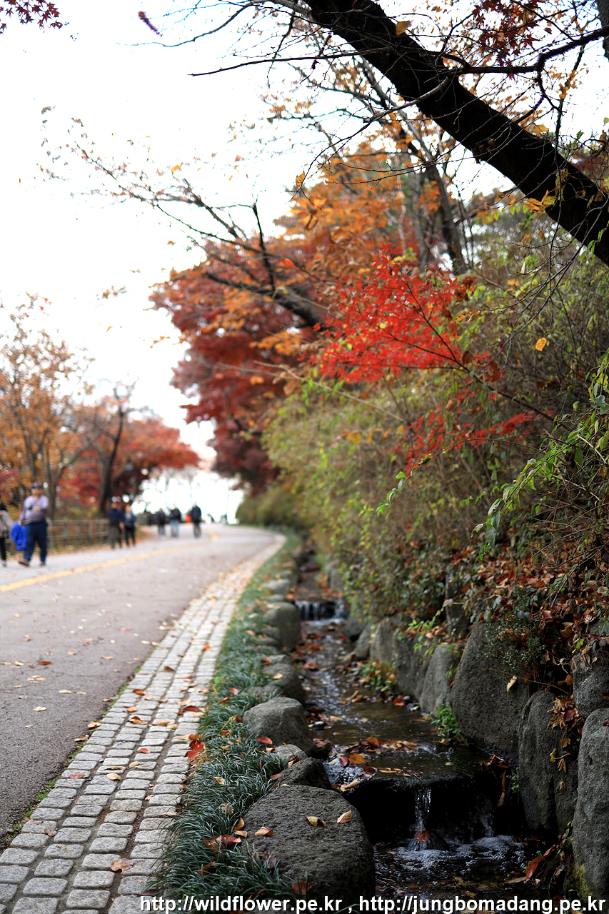 북측 순환 산책로의 동국대 인근은 아직 초록빛이 많은편입니다. 일주일 이상 지나야 붉게 물들 것 같네요.