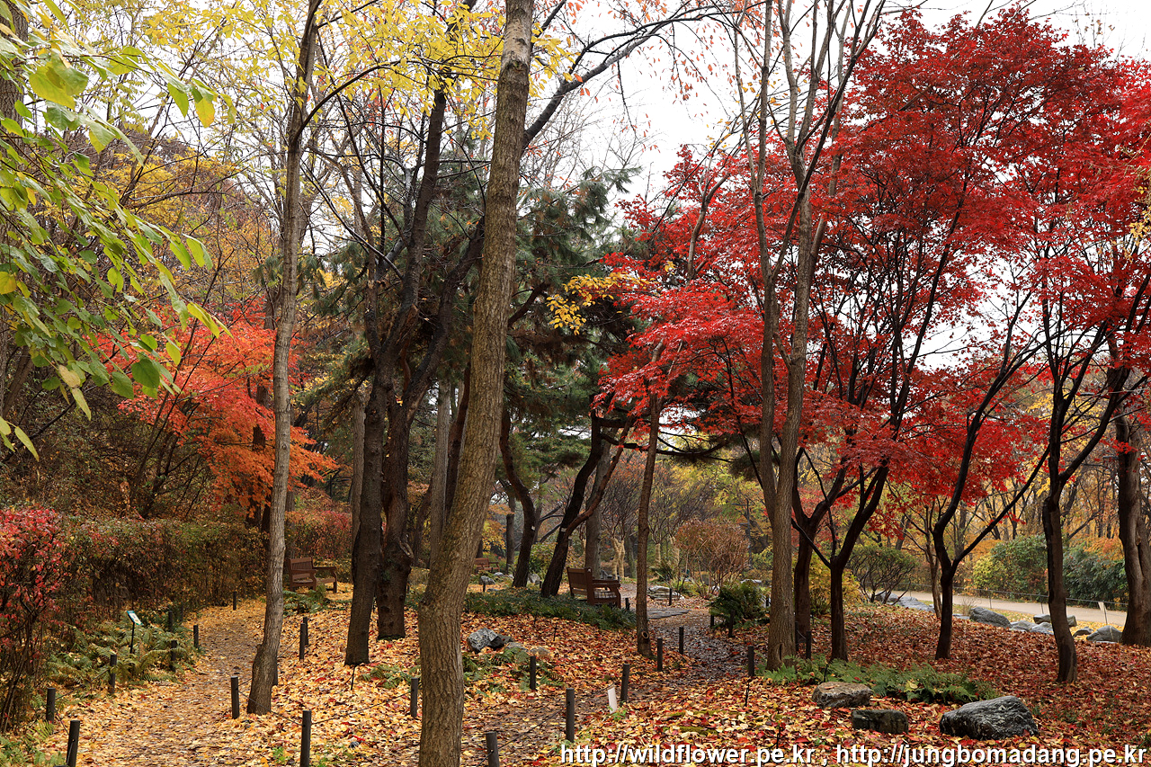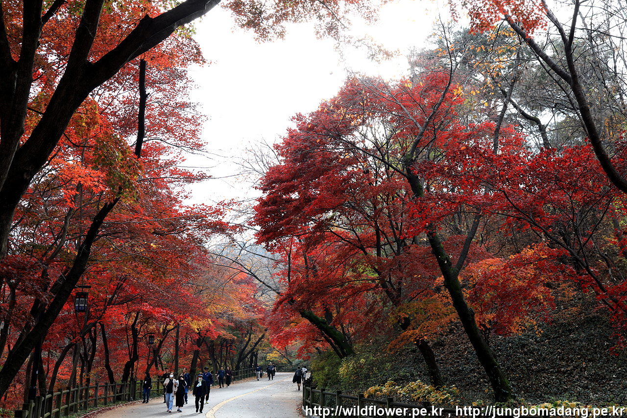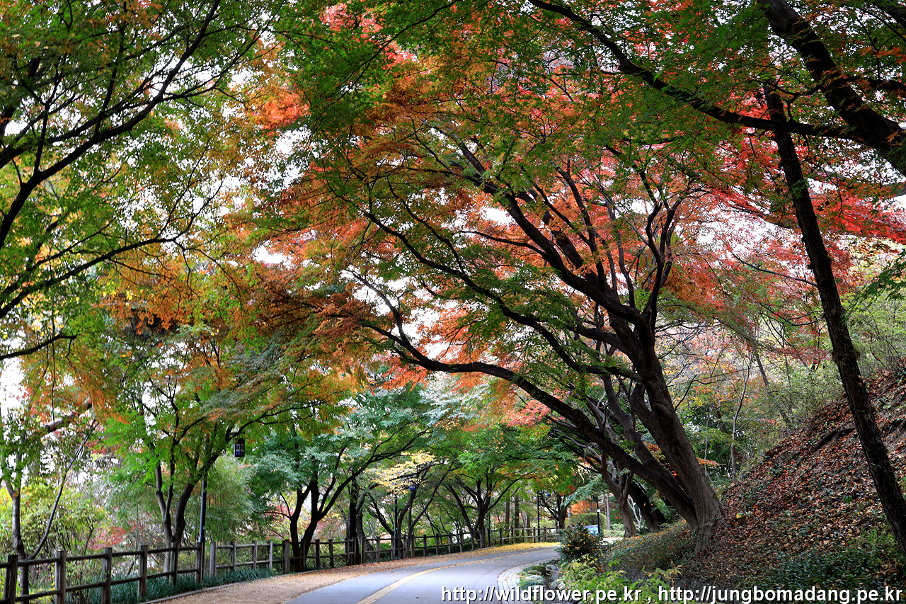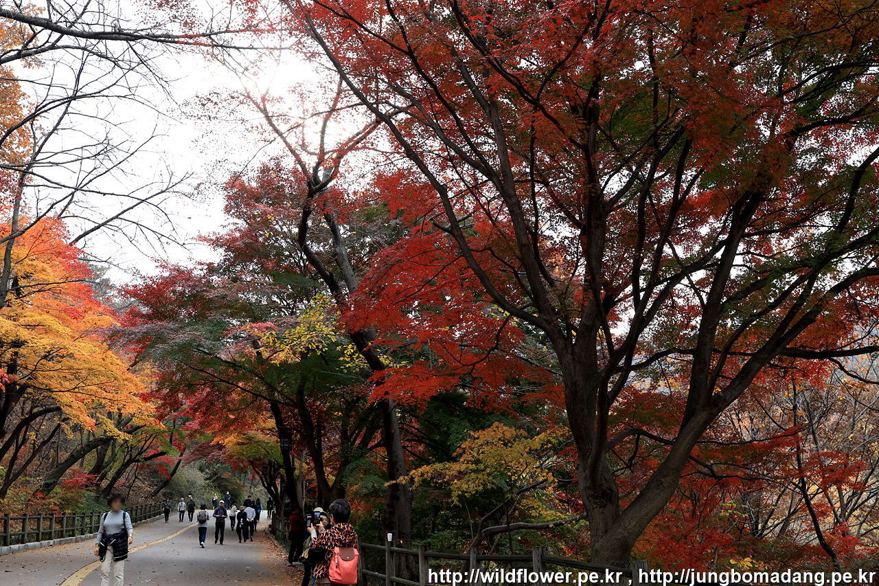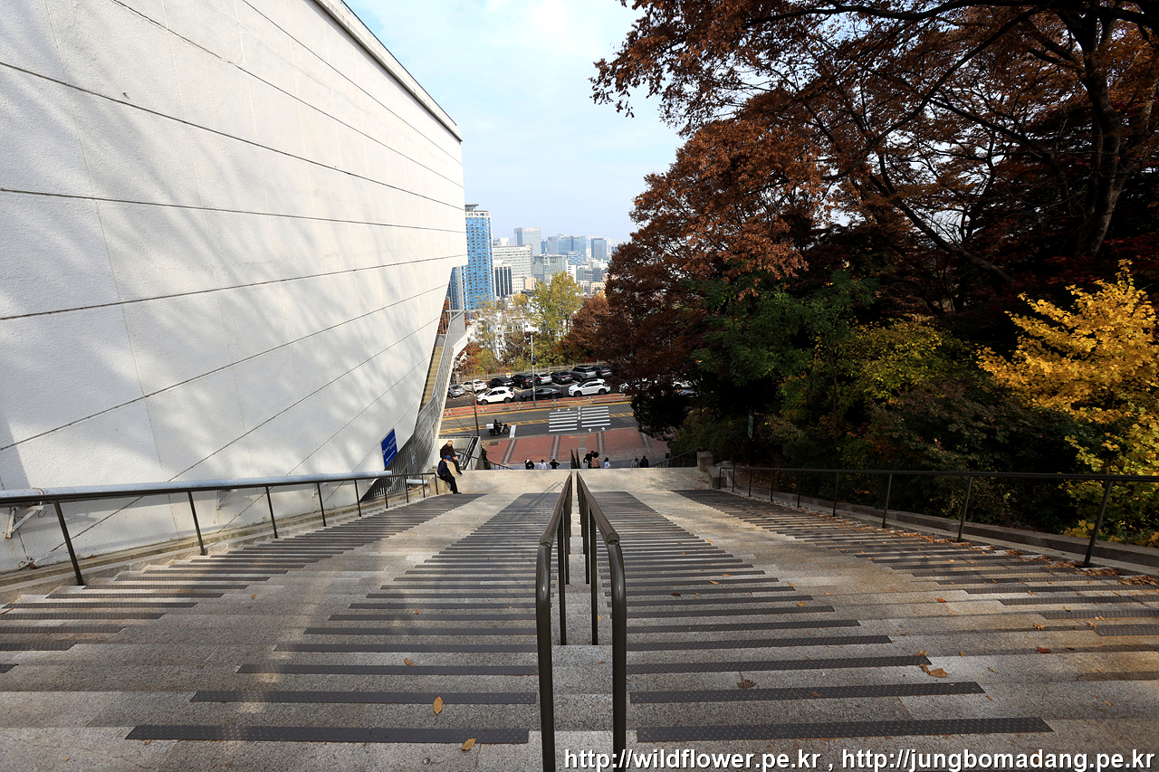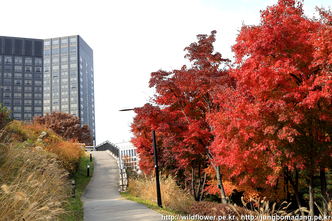북측 순환 산책로의 동국대 인근은 아직 초록빛이 많은편입니다. 일주일 이상 지나야 붉게 물들 것 같네요.