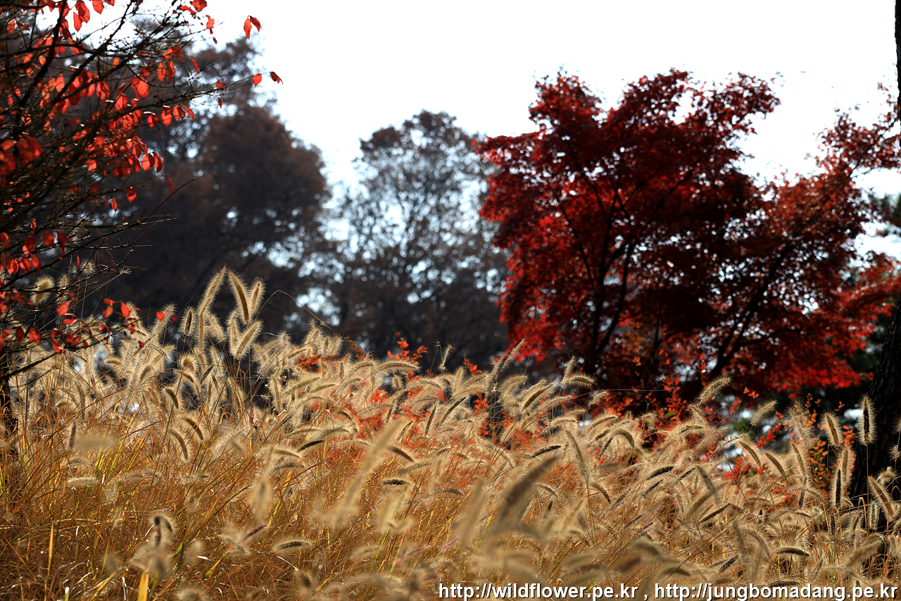 수크령 뒤로 단풍