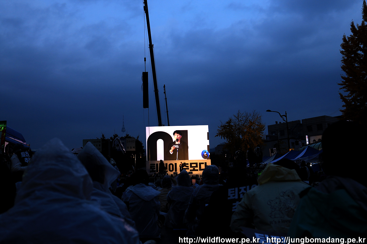 집회 중간 중간 꽤 비가 내려서 바닥에 앉았는 데 카메라 보호 차원에서 우의대신 비닐우산을 썼으나 엉덩이 쪽은 어쩔 수 없이 젖었네요. 다음에 우천 대비 참석 땐 바닥 위로 비를 막을 에어 방석이라도 챙겨봐야 겠습니다.
