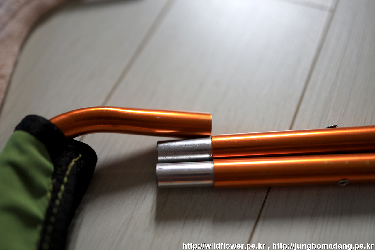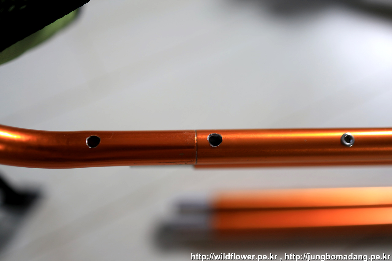 신축성이 거의 없는 줄이라서 각각 구멍에서 뺀 줄을 밖에서 묶는 방식으로 합니다.