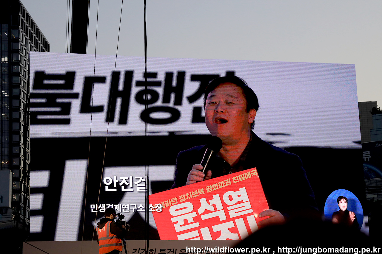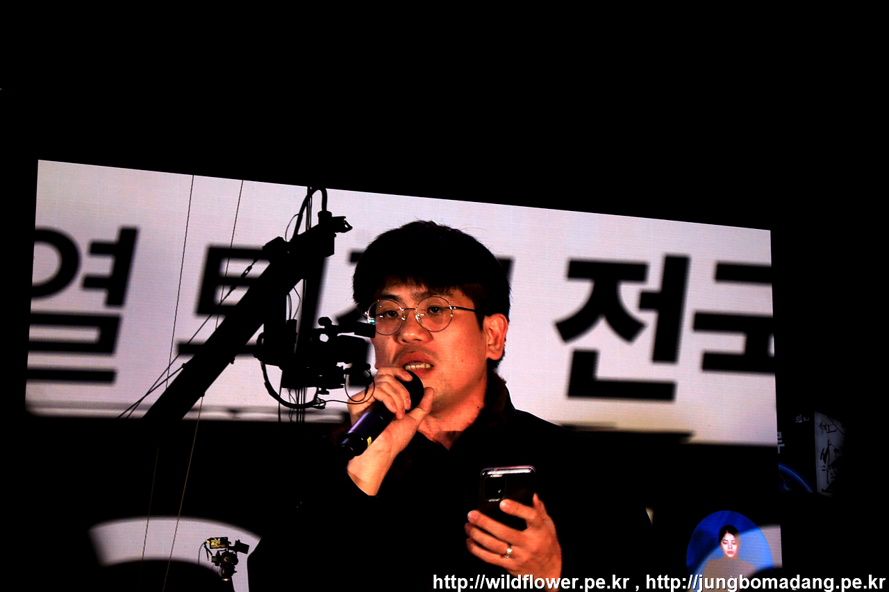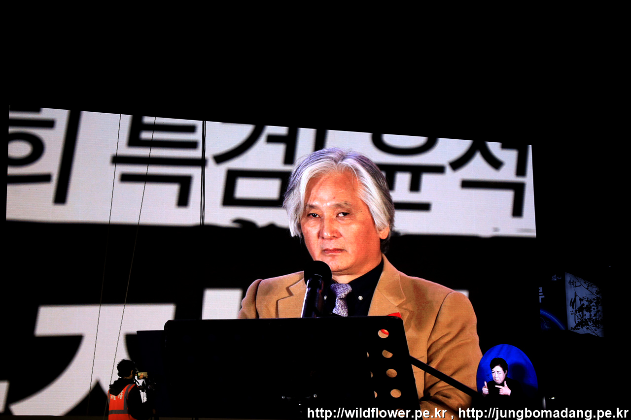 사전 집회가 끝나고 본집회에 안진걸 소장님이 나오셨습니다.