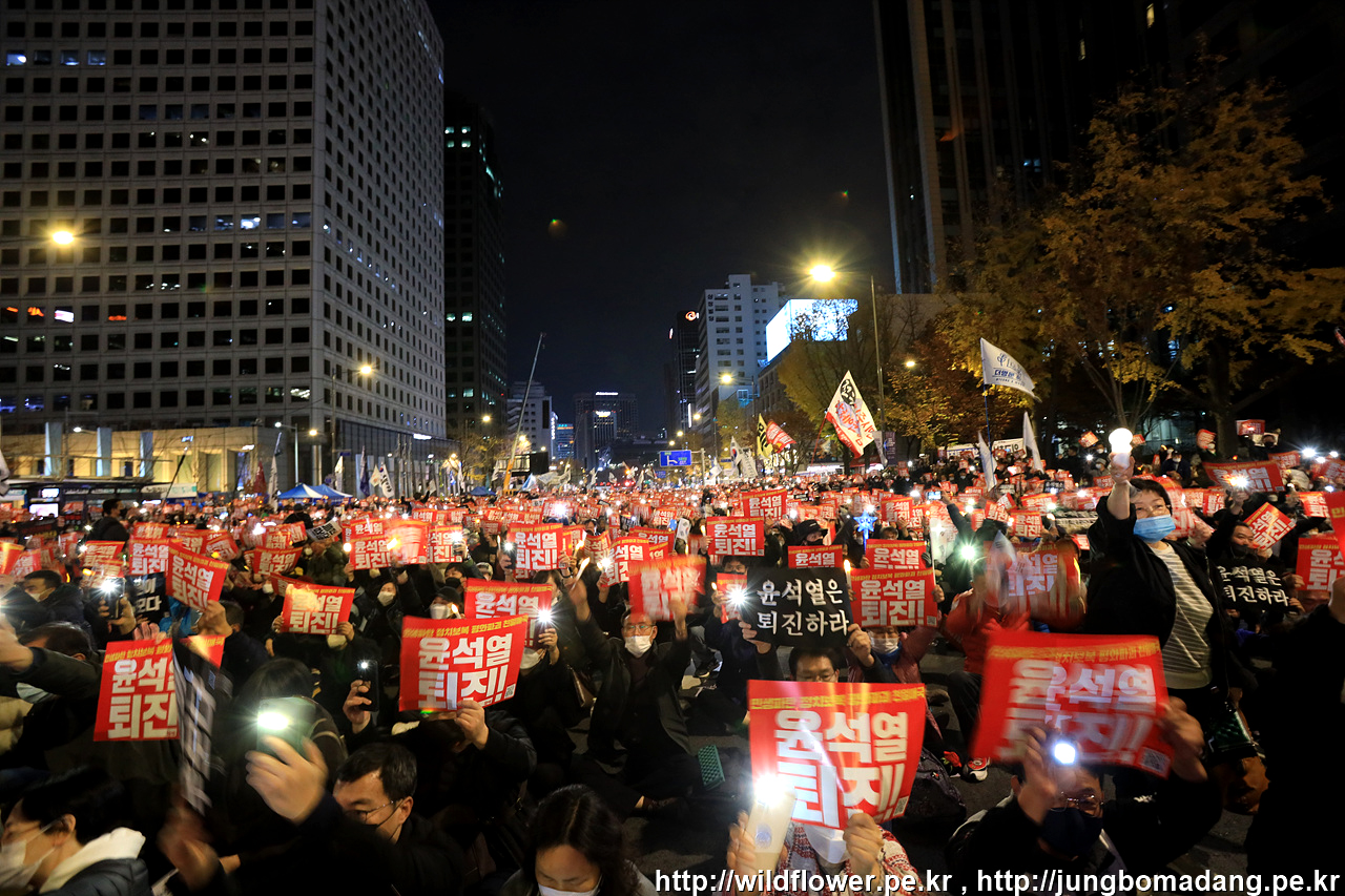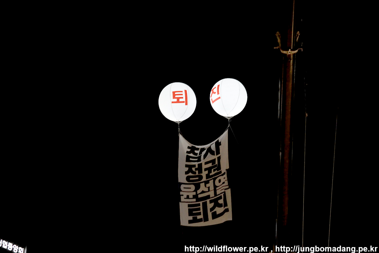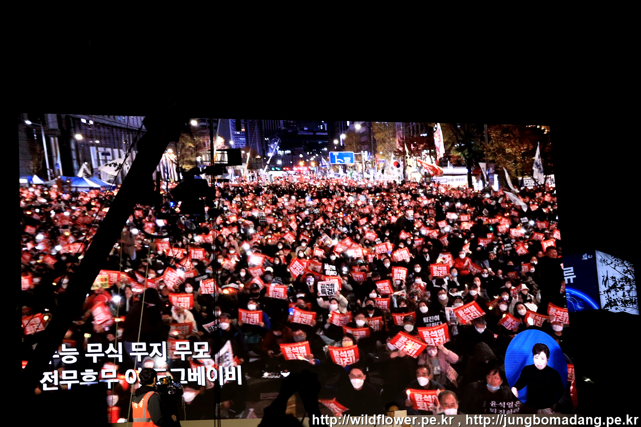 인터넷을 통해 자주 뵈었던 트럭도 보입니다. 정말 잘 만드셨습니다. 윤석열을 하도 시민들이 떄려서 망가져서 아예 윤석열 모가지가 돌아가게 만들었다는 말씀을 해주셨네요.
