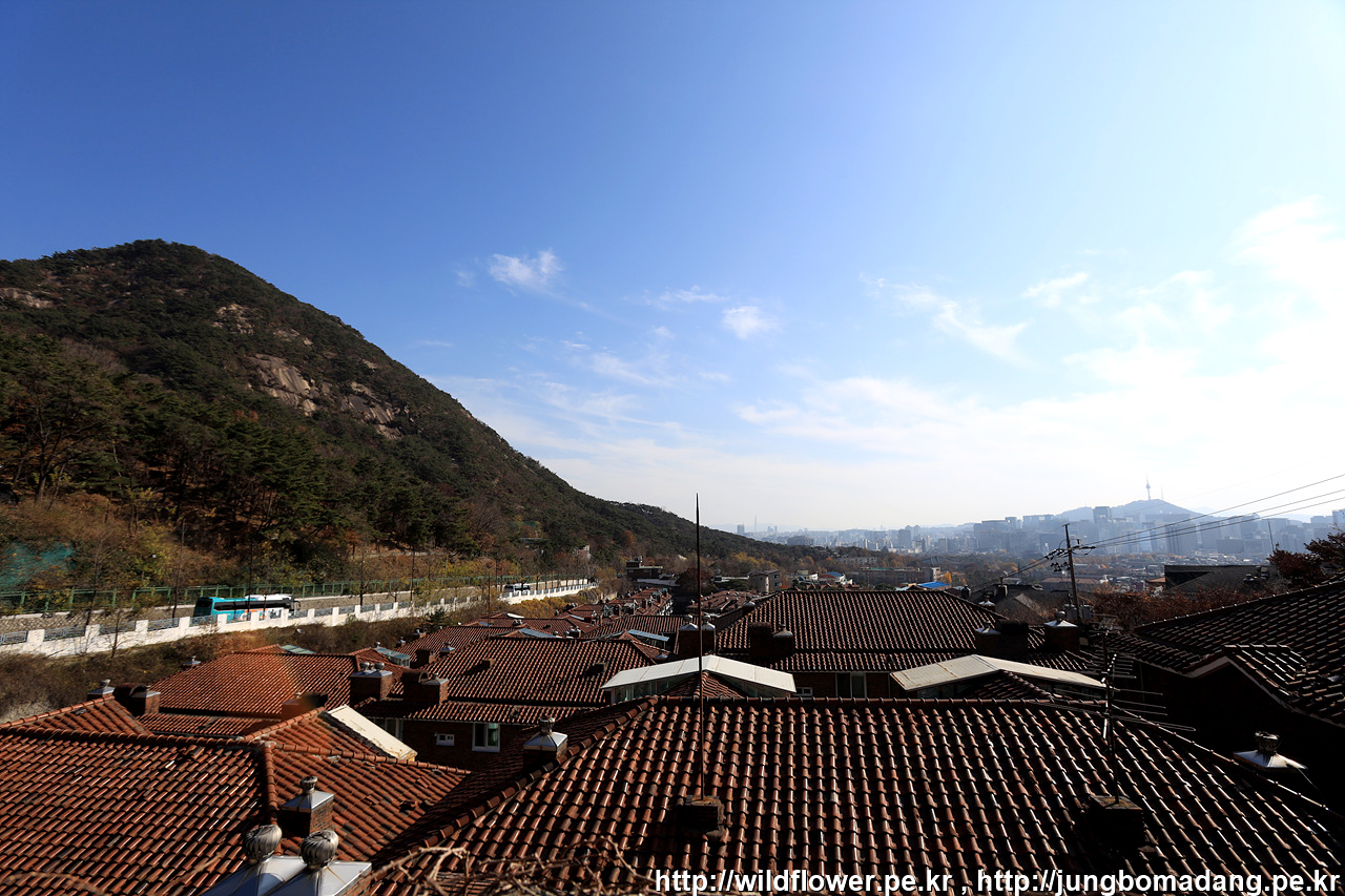 좌측으로 북악산이 보입니다. 아래쪽은 청운빌리지. 좌측편으로 보이진 않지만, 윤동주문학관 및 창의문이 있습니다.