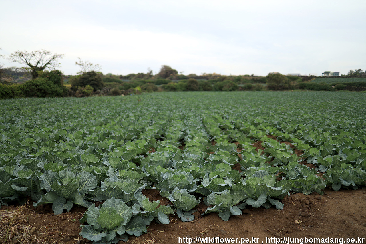 양배추 밭에 냉이가 공생하네요.