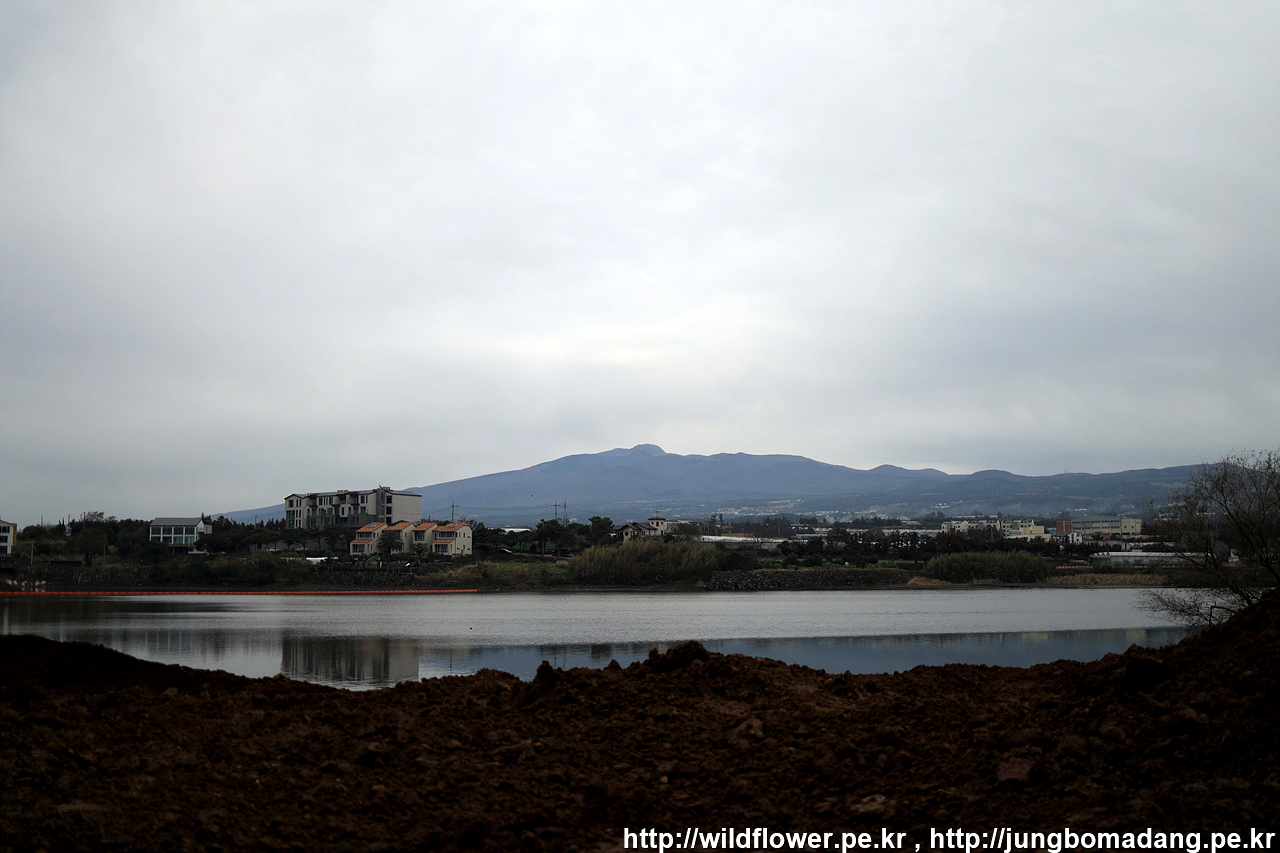수산저수지와 한라산