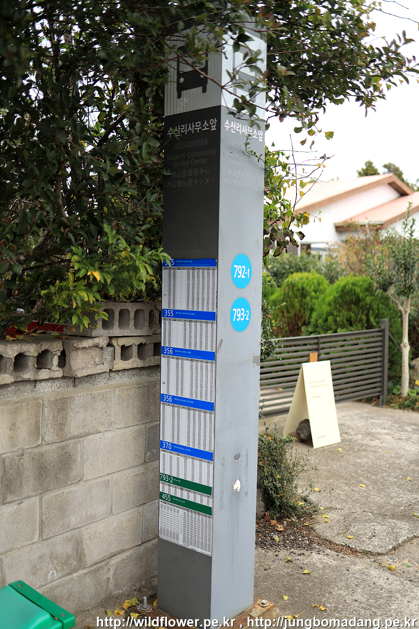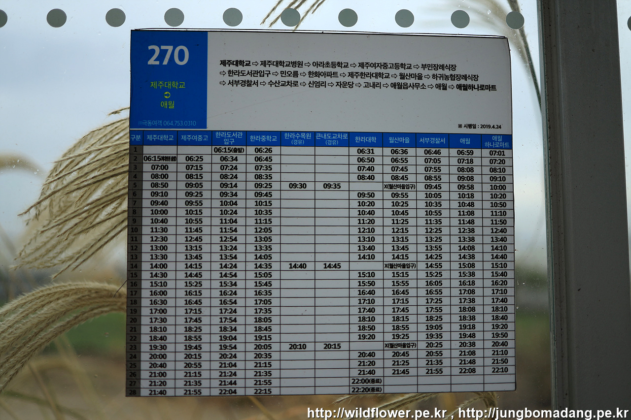 이 주변을 지나는 버스는 시간대가 매우 불편하므로, 조금 걸어서 수산교차로 정류장에서 270번 버스를 타고 한림으로 이동합니다.