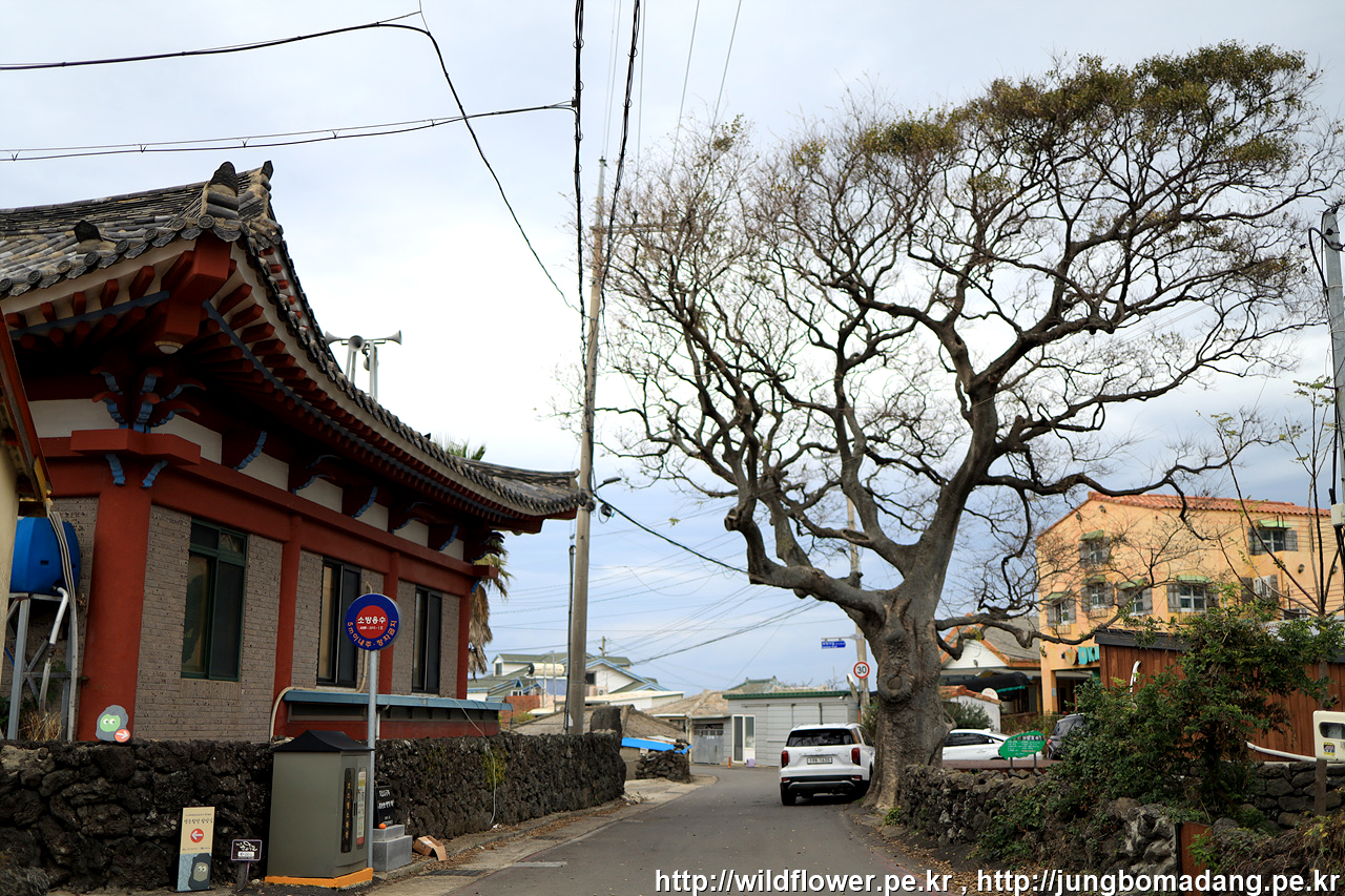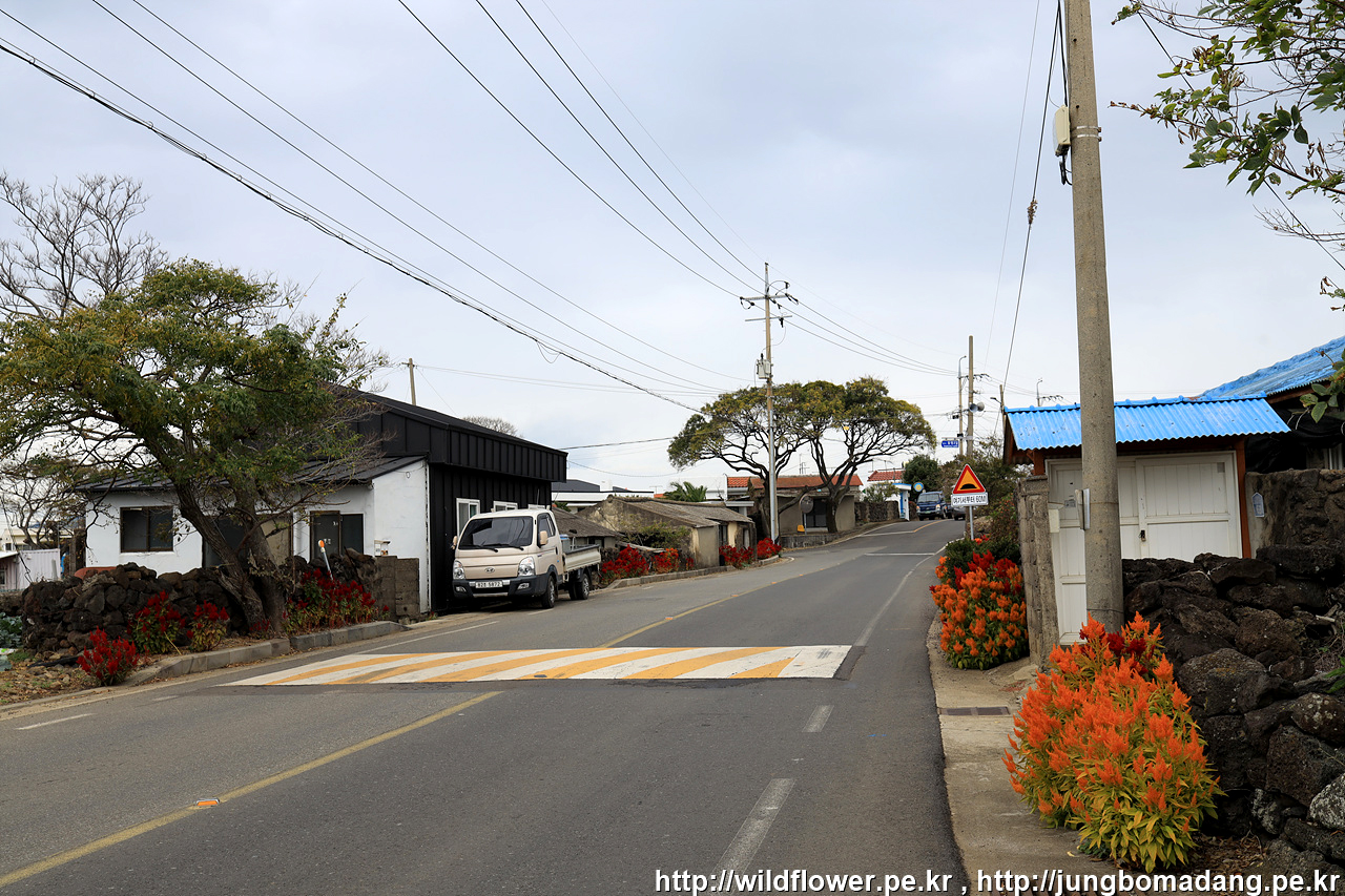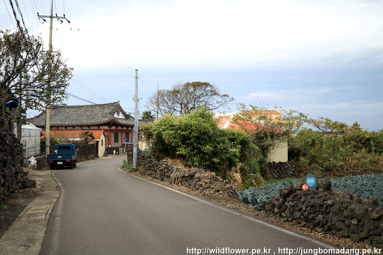 한림읍 동명리 수류촌 밭담길의 시작점인 진근동 정류장으로 걸어서 이동합니다.