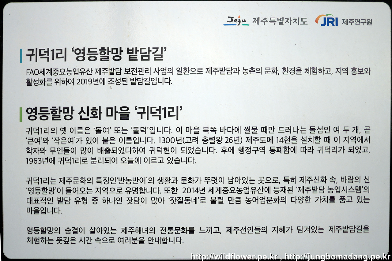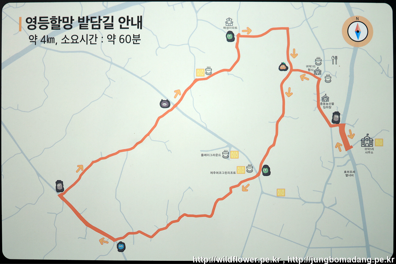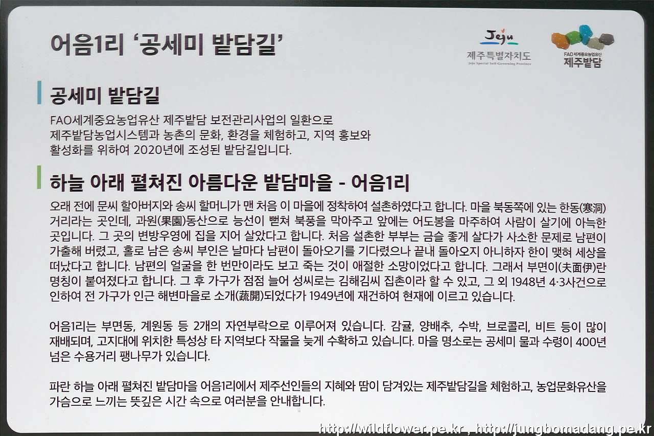 시작점 좌측 길 건너편에 지도(안내판)이 있는 데, 못 찾고 나중에 사진 정리하면서 알게 되었네요. 그래서 이번 코스는 제주 밭담 홈페이지에서 가져왔음을 알려 드립니다.