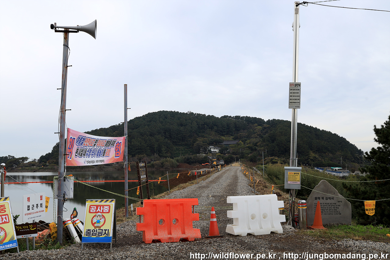 저런... 밭담길 종주 중인데, 첫 시작부터 공사 구간이라니... 다행히 지나는 데는 문제 없을 거 같아서 조심 스레 이동합니다.