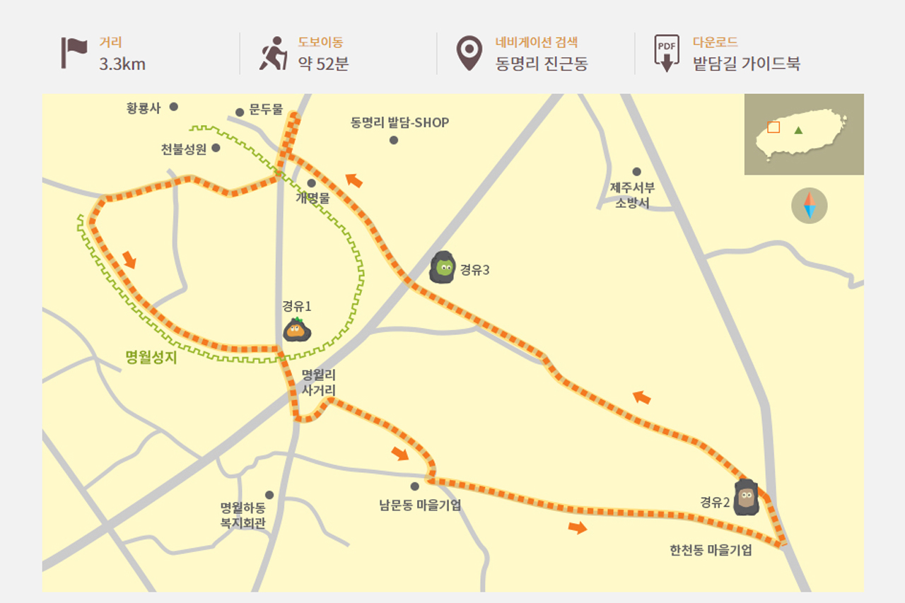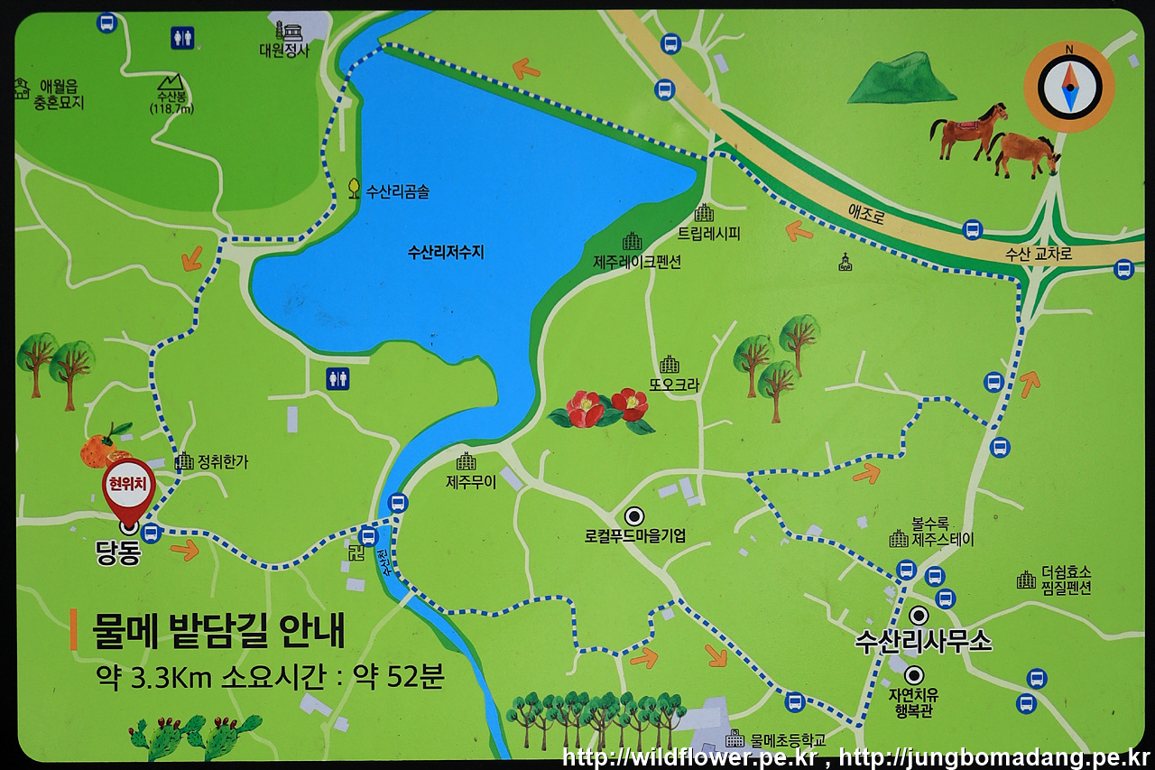 여기 표시된 지도상 물메 밭담길에서는 수산봉을 더 포함하지만, 처음에 올린 지도 기준으로 진행하시면 됩니다.