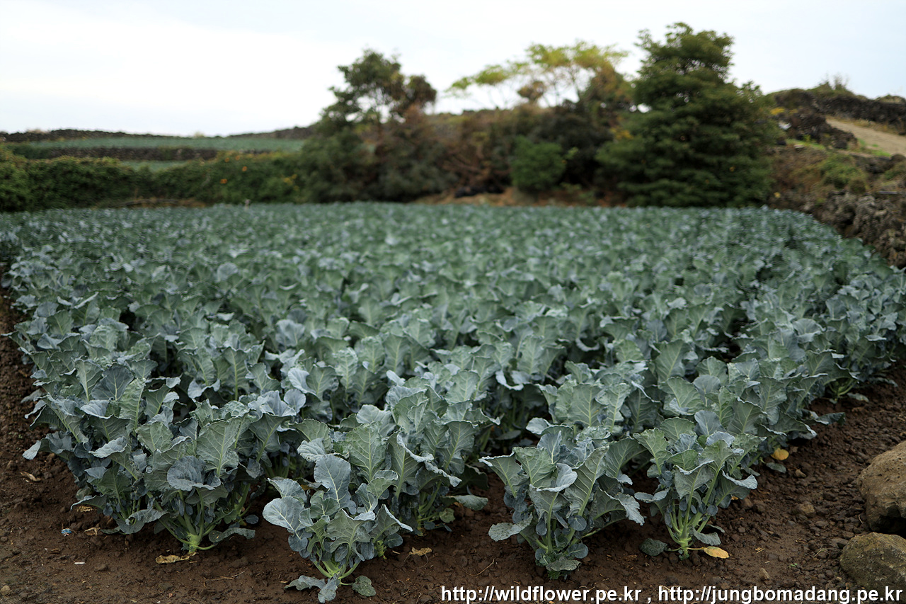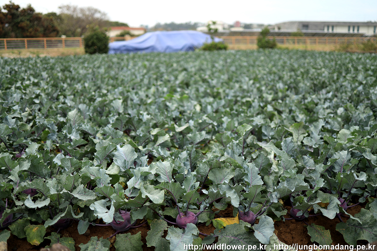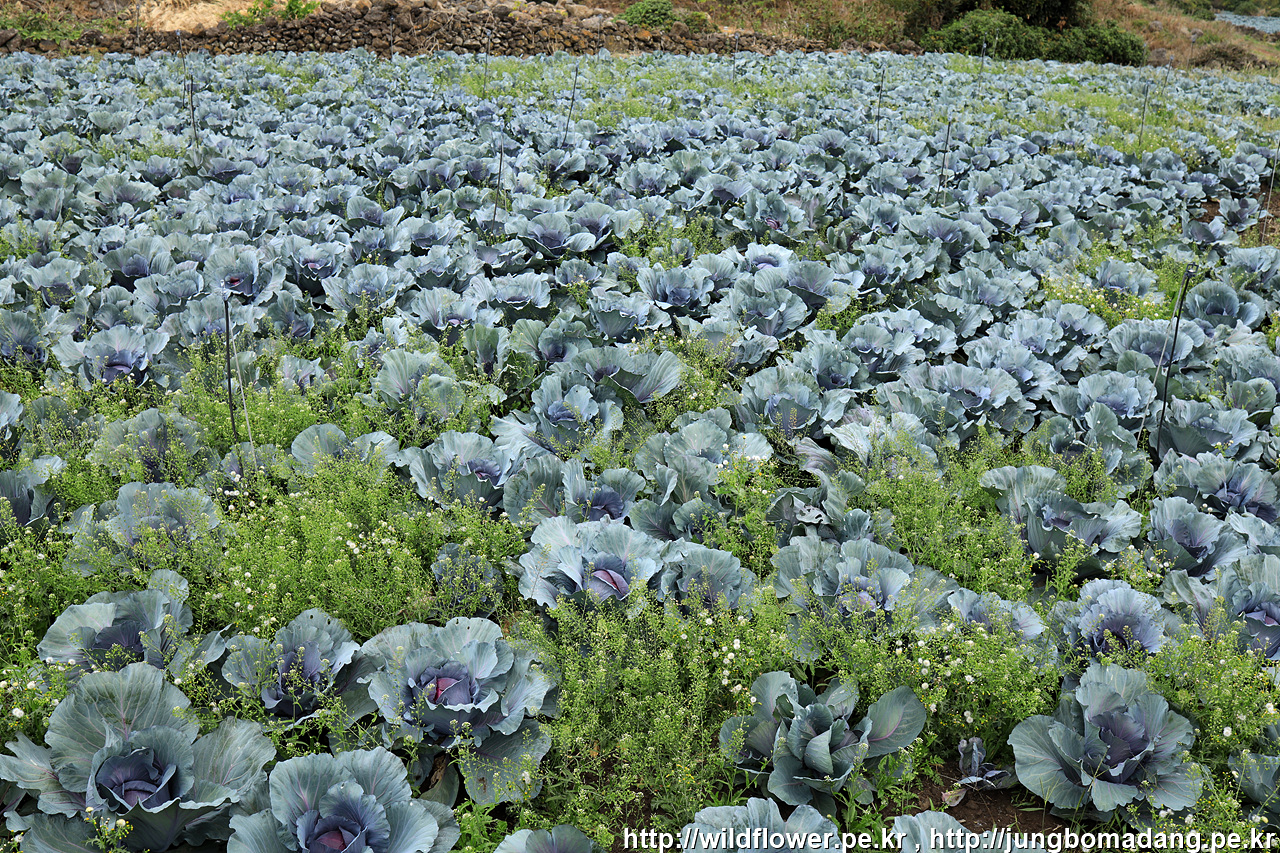 양배추 밭에 냉이가 공생하네요.