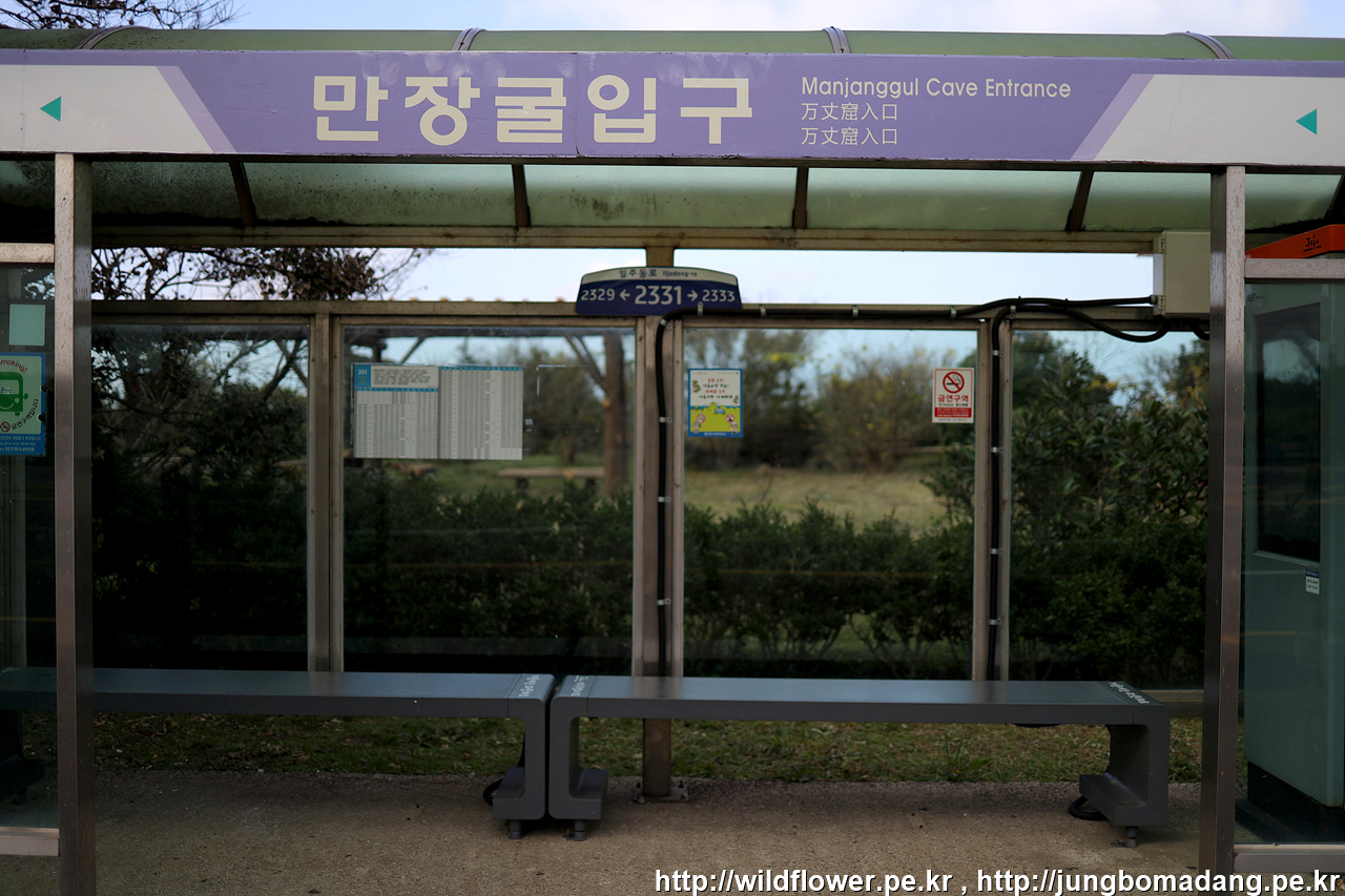 마지막 8번째 코스를 가기 위해 다시 평대리사무소 정류장에서 202버스를 타고 만장굴입구에서 하차합니다.