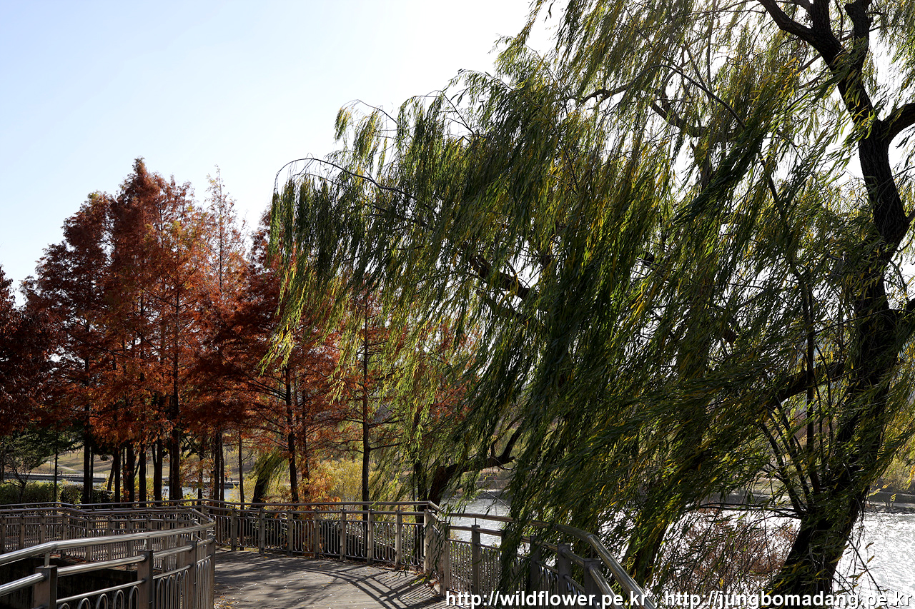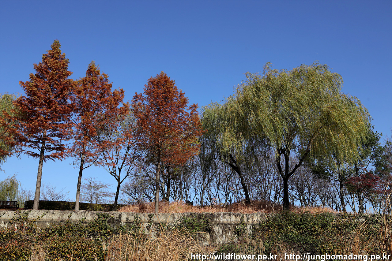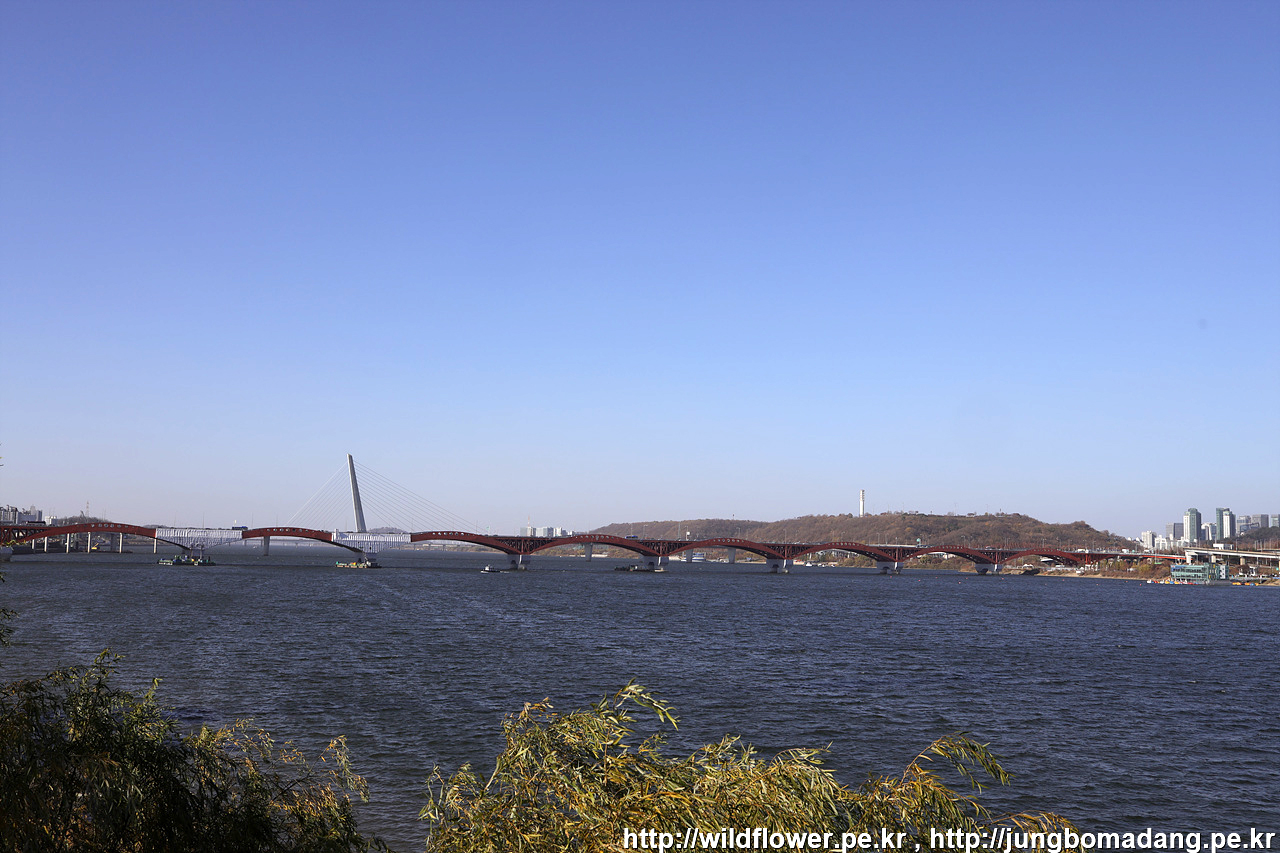 한강 건너편에 노란빛으로 늘씬한 나무들은 미루나