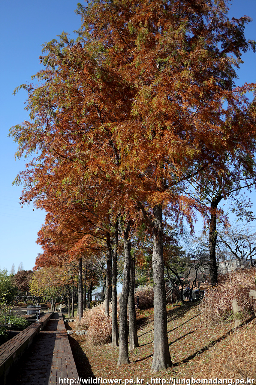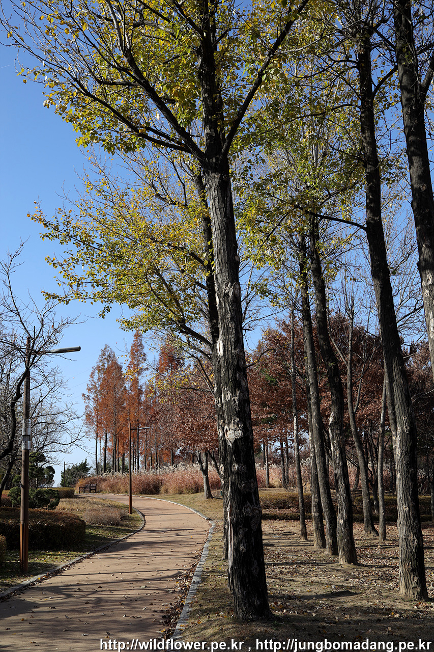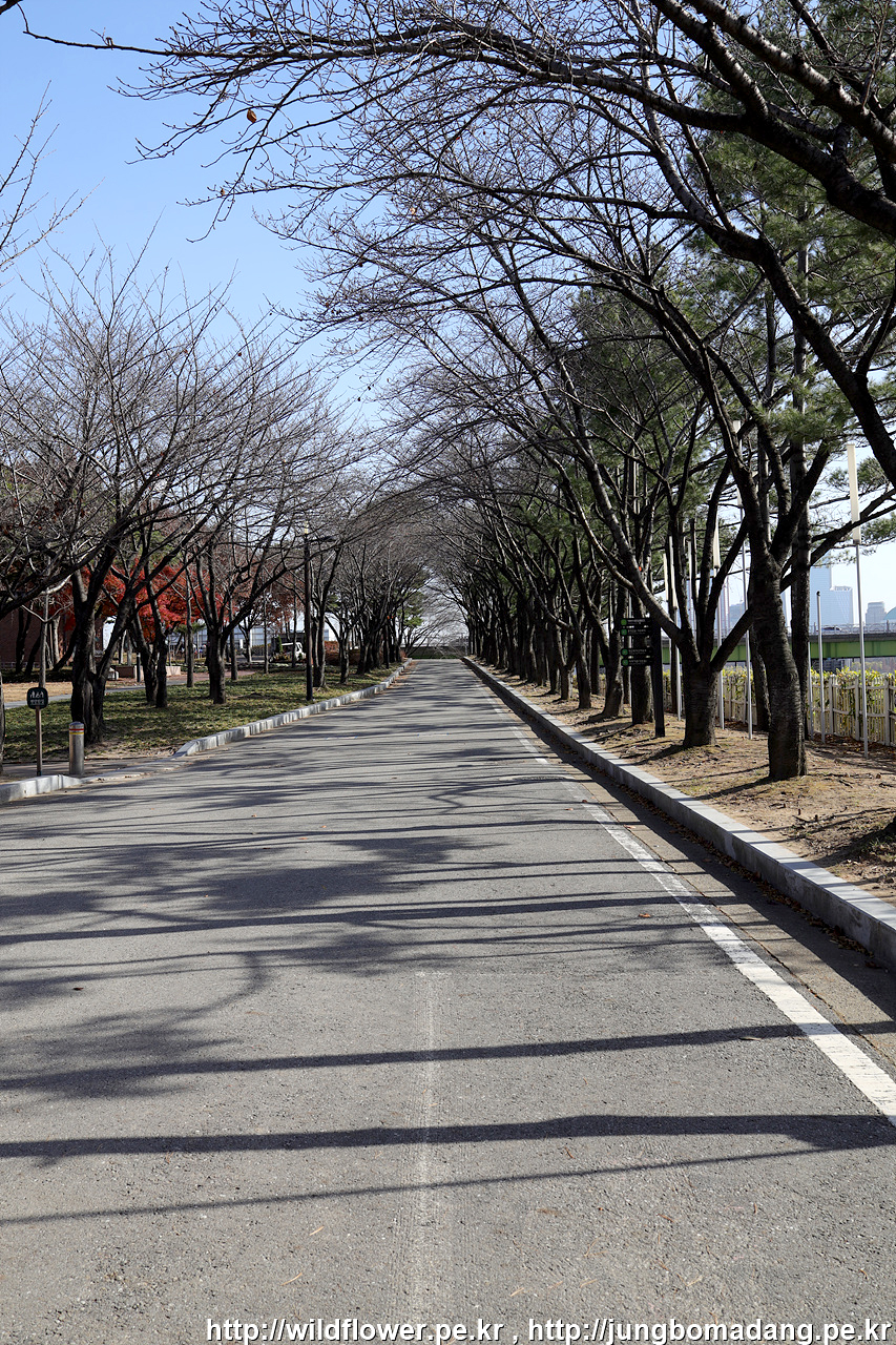 한강 건너편에 노란빛으로 늘씬한 나무들은 미루나