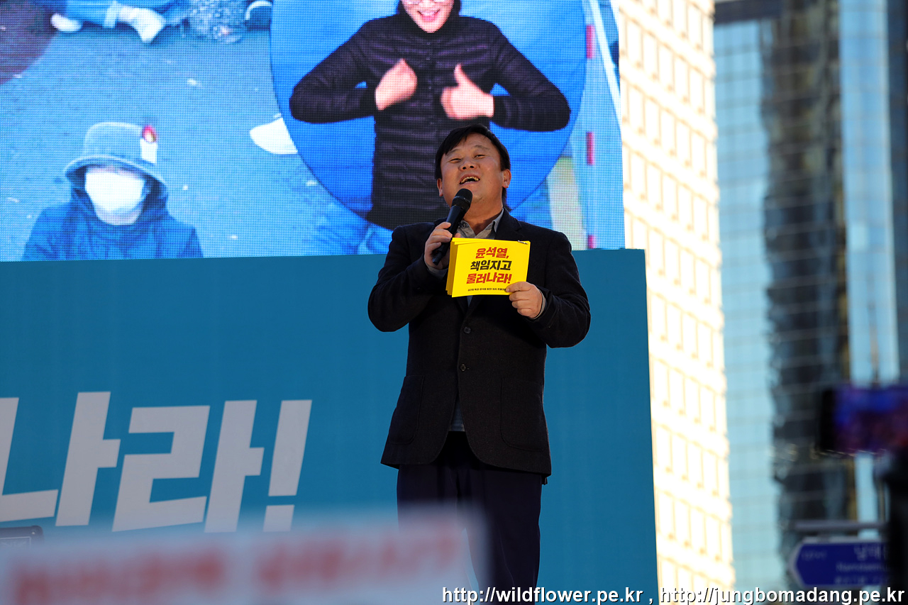 첨으로 무대에 올라 다른 기자님들 사이에 끼어서 추운 날씨에도 함께 해 주신 촛불 시민님들을 담아 봅니다.
