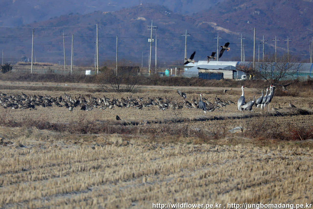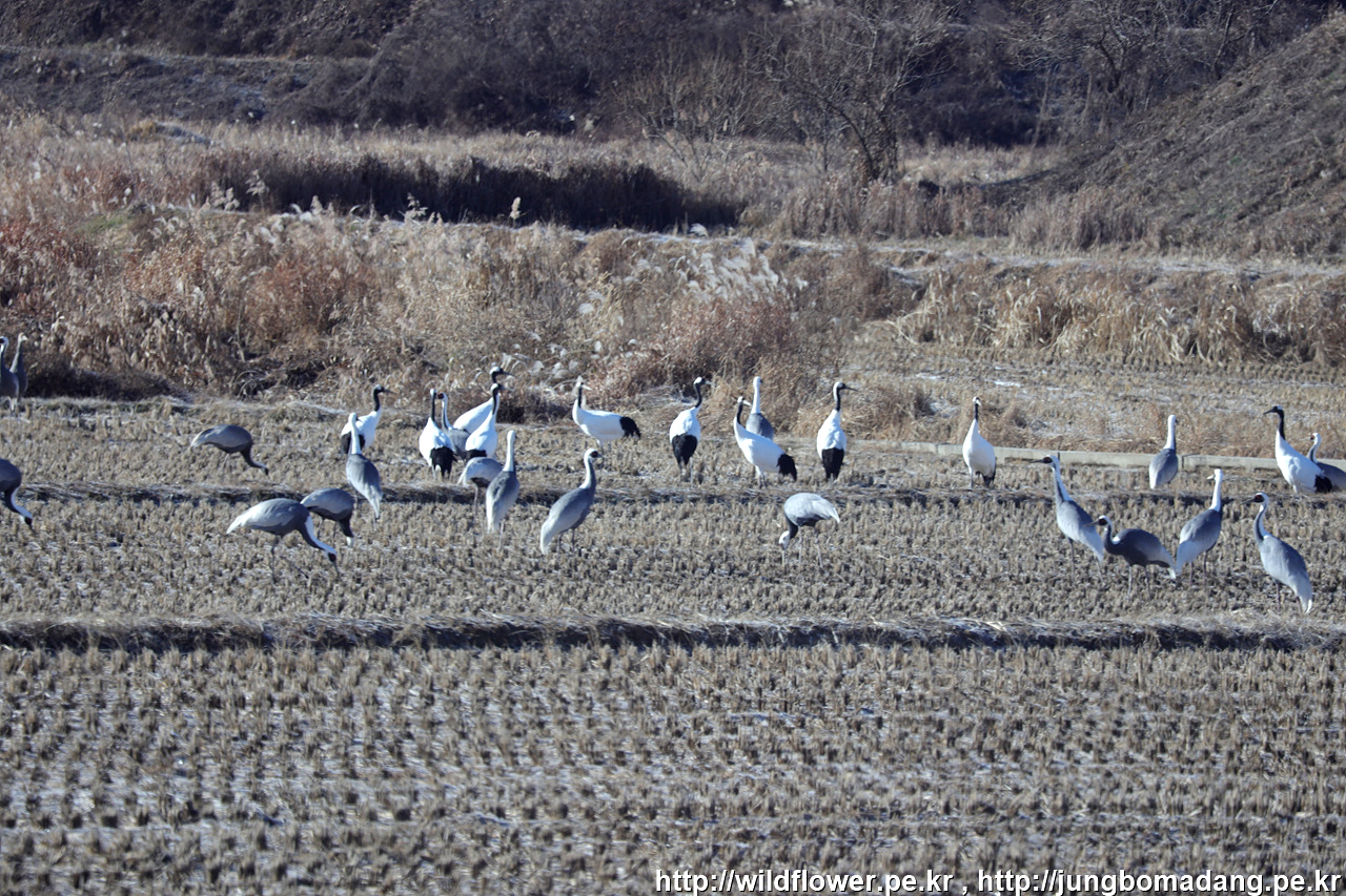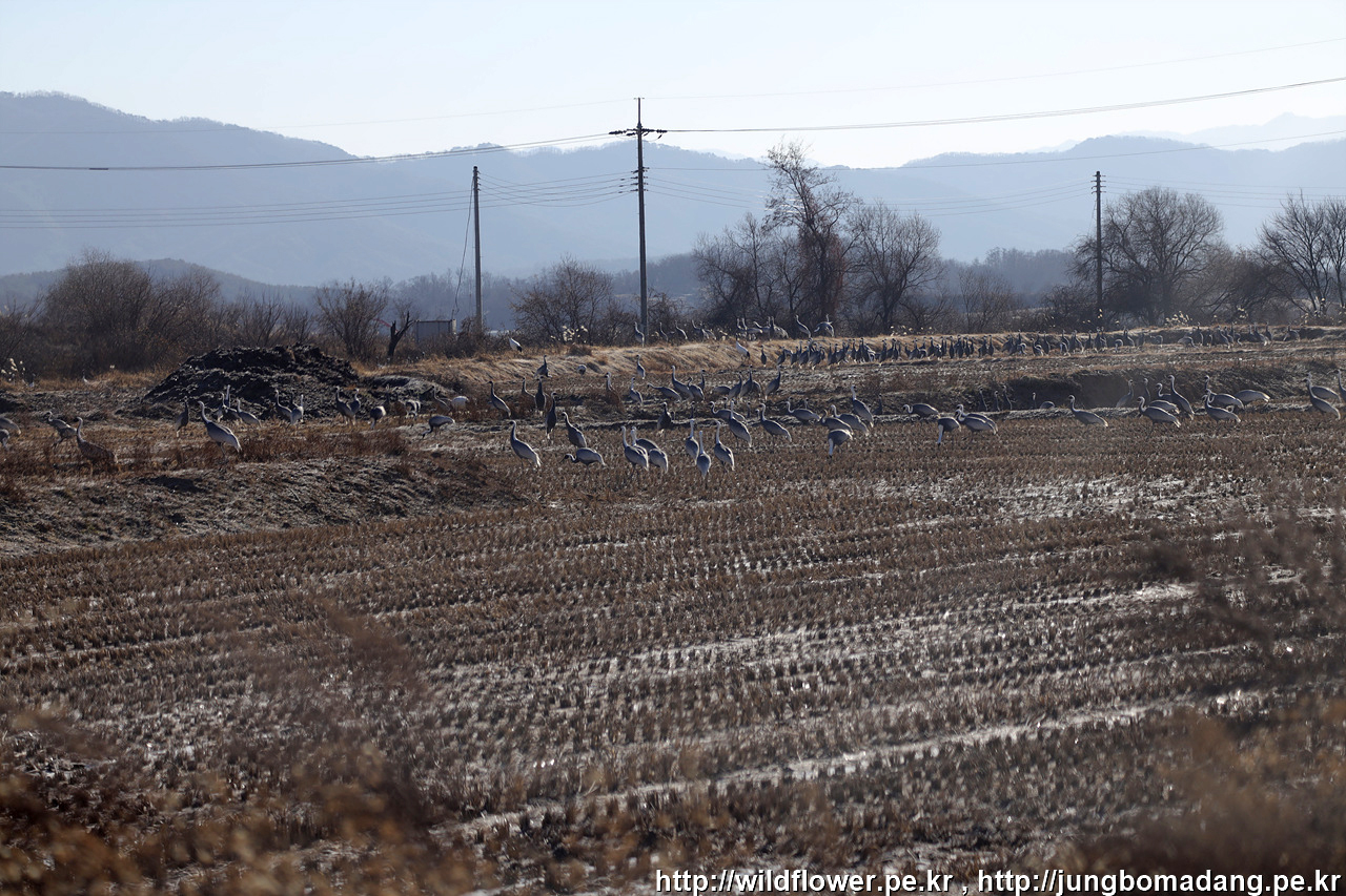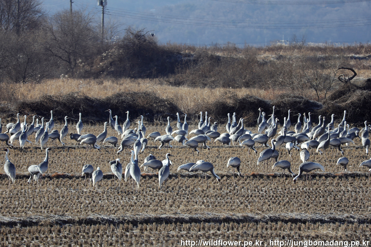 역광으로 잘 보이진 않지만, 무수히 많은 재두루미들