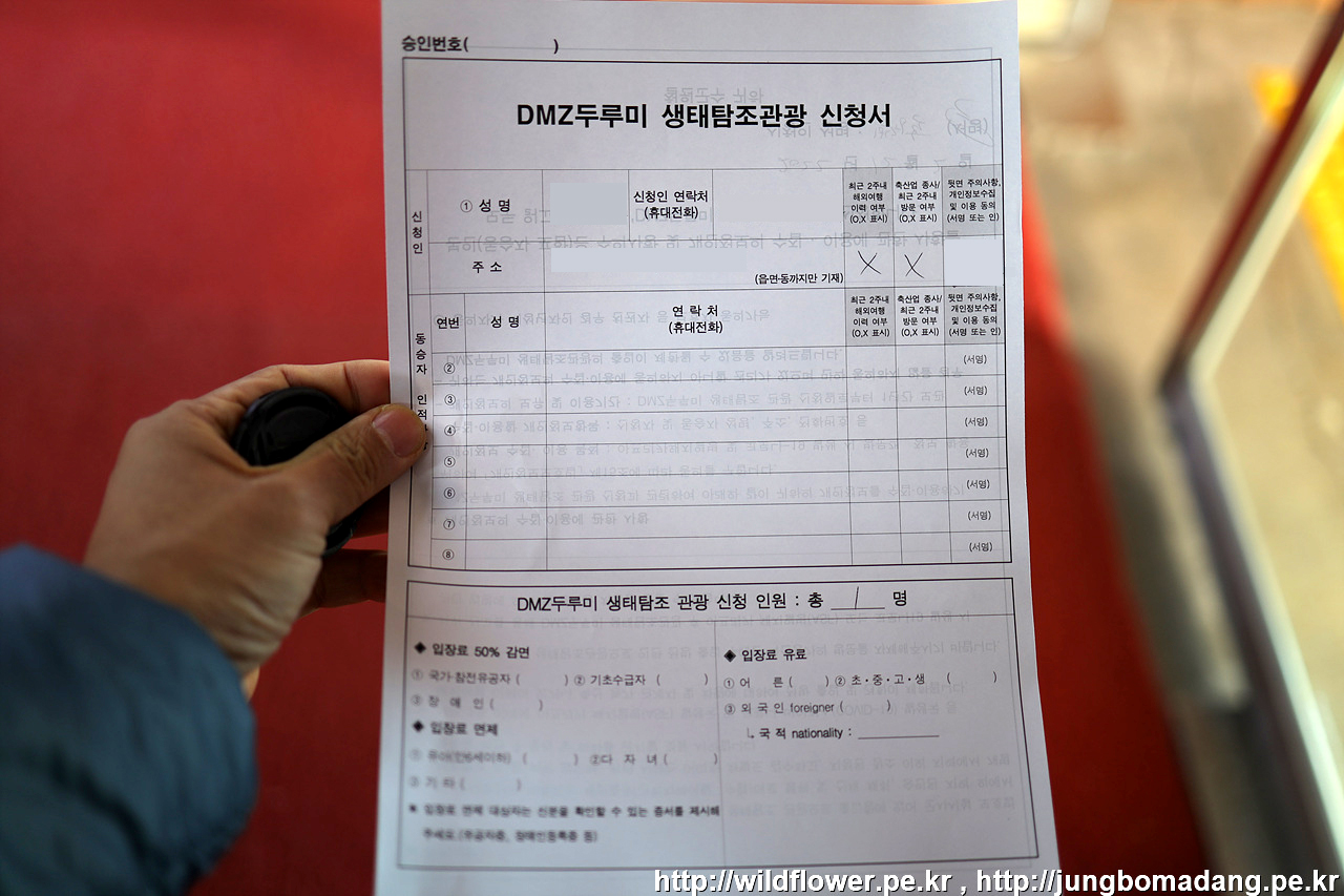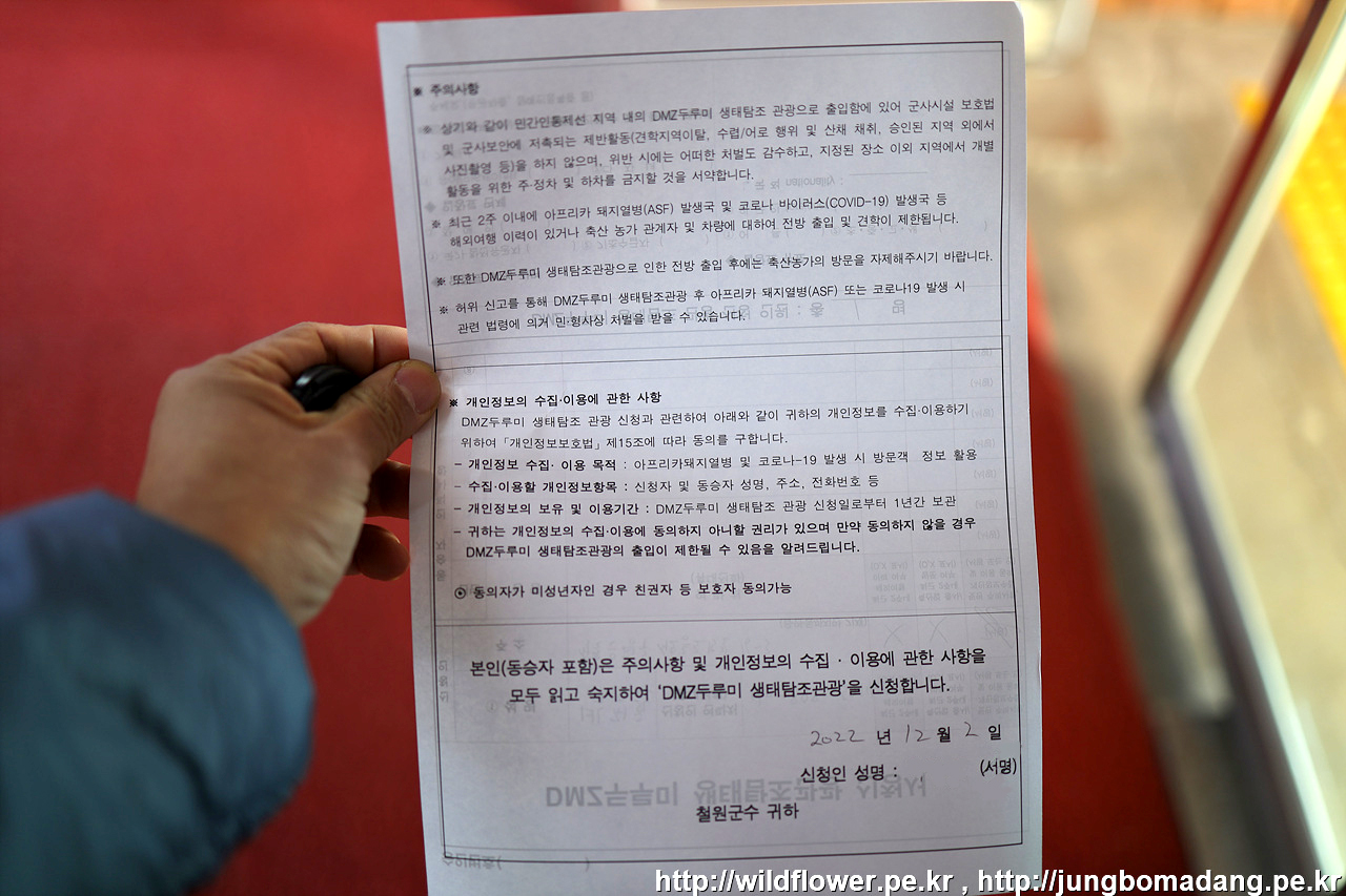 DMZ 두루미 평화타운에 도착하니 9시 20분이 넘어서 여유 있게, 새 보러 왔다고 하니 안내에 따라 신청서 작성을 하고