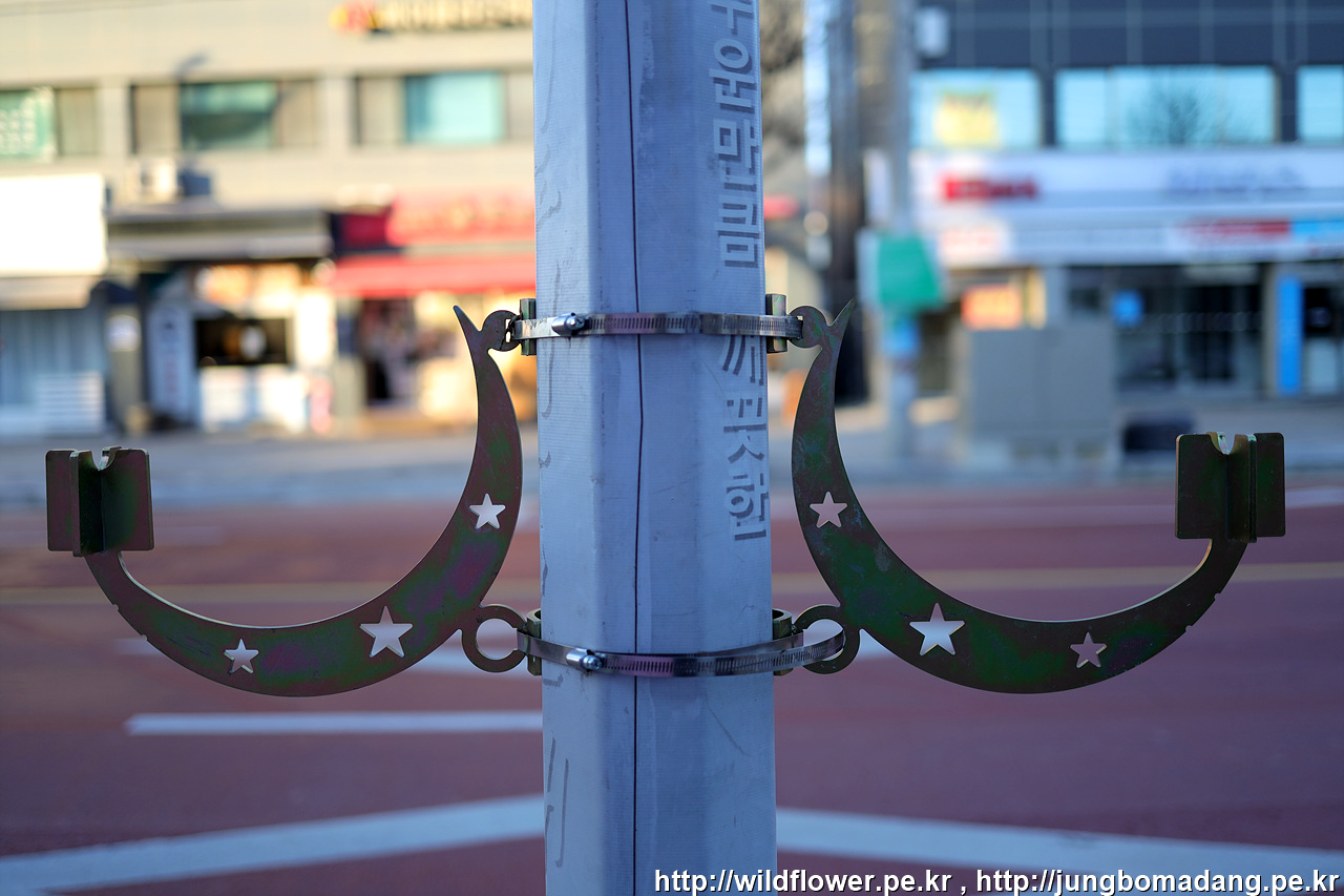 가로등에 붙어 있는 달.