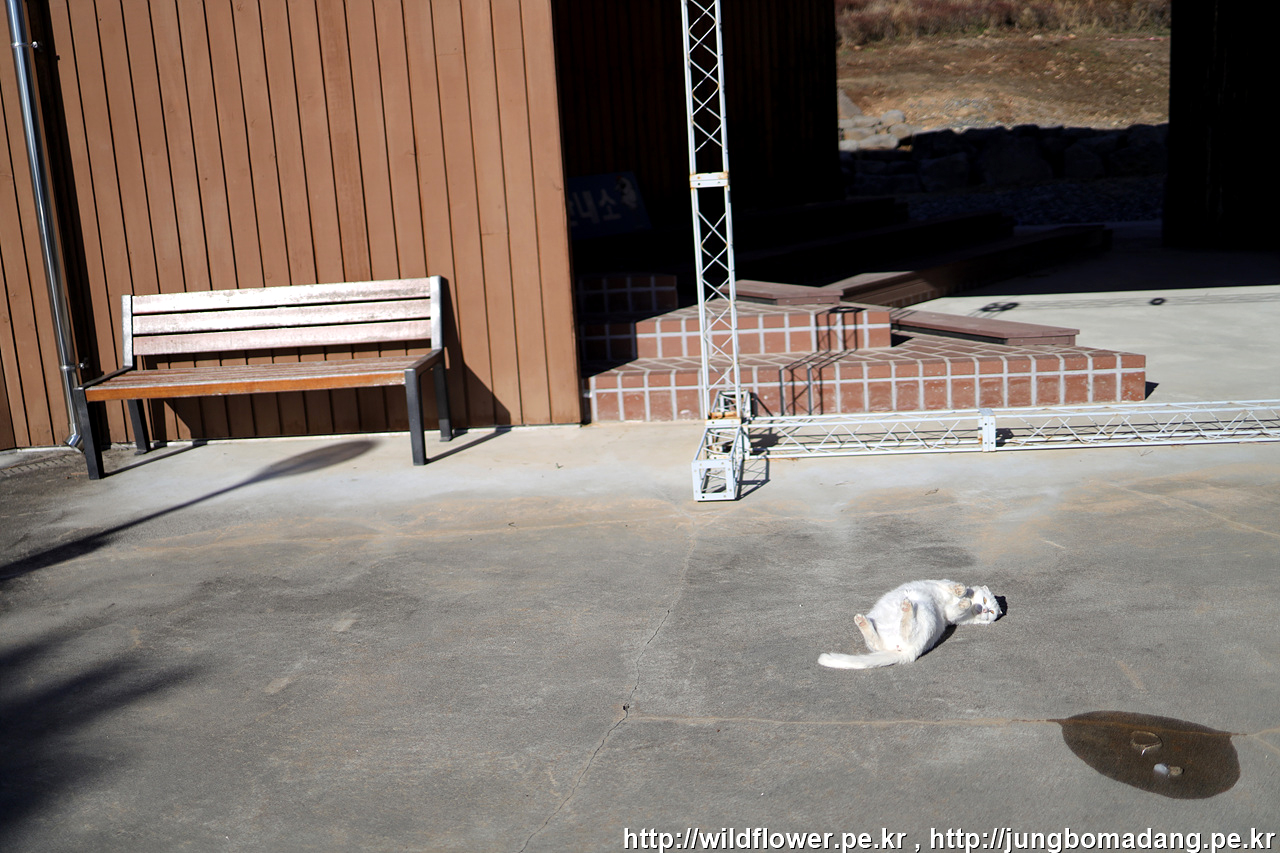 처음 DMZ 두루미 평화타운에 도착 전에 흰고양이 한마리가 눈에 띠었는 데, 물으니 누군가 버린듯한 고양이로 직원분들이 밥을 주고 있다고 하네요. 가끔 검은고양이도 나타난다고 하네요.