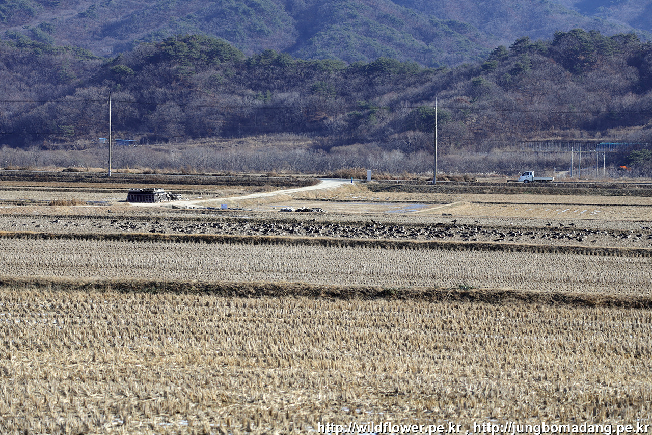 길 건너편 논에 쇠기러기가 잔뜩 모여 있네요.