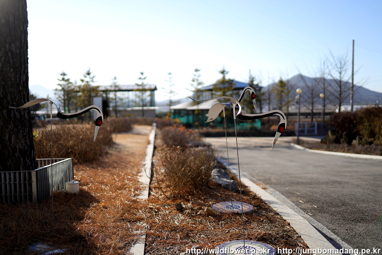 두루미 모양 조형물인데 고개를 무한 까딱이는 데, 왜? 부리를 테이프로 묶어 두었나 궁금했는 데, 나중에 투어시 해설사님이 설명해 주시는 데, 두루미는 사람을 만나면 부리로 쫀다고 합니다. 근데 만날일은 거의 없는 것이 예민한 녀석들이라 이미 수백미터 전부터 인기척이 느껴지면 날아가 버리기 때문입니다.