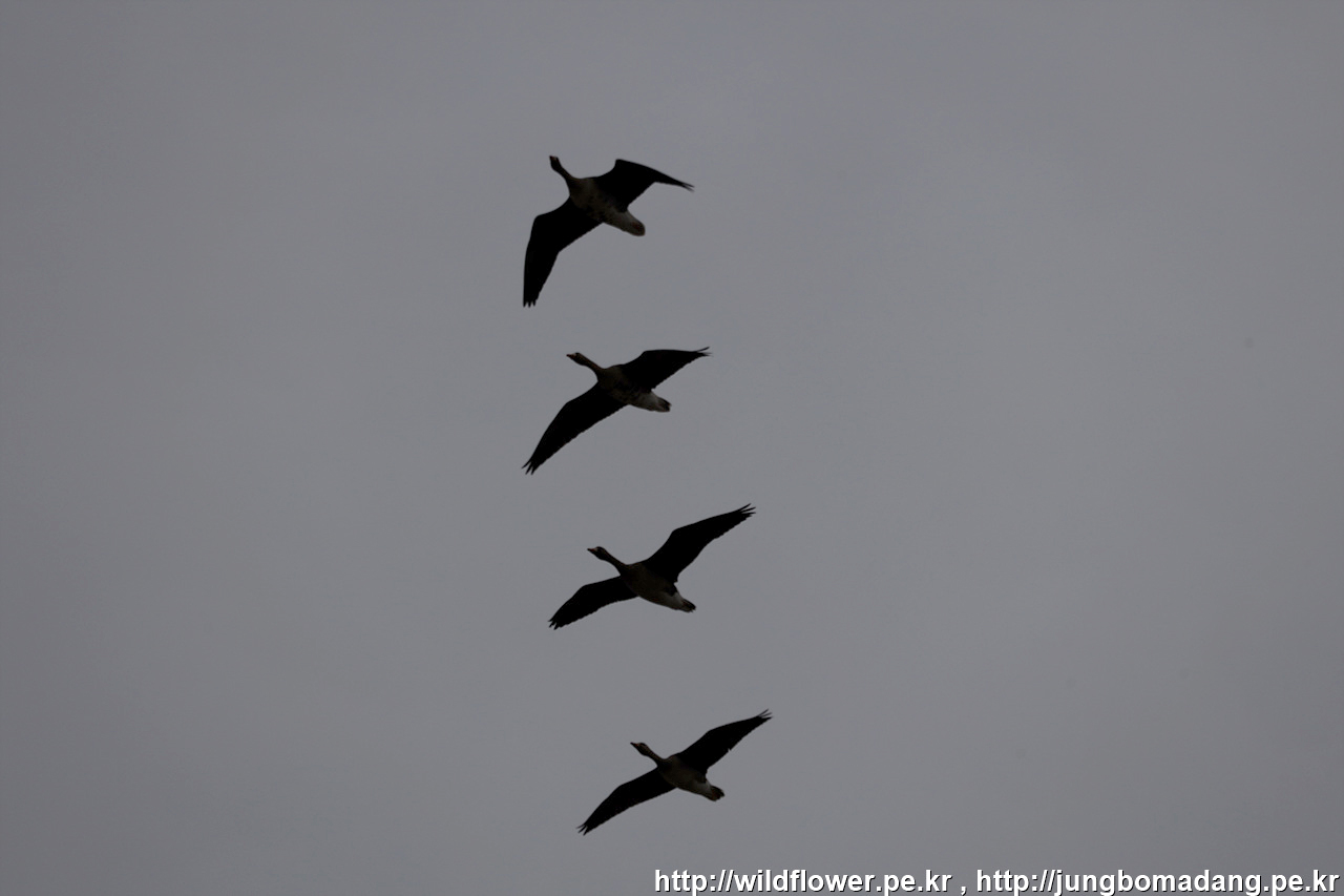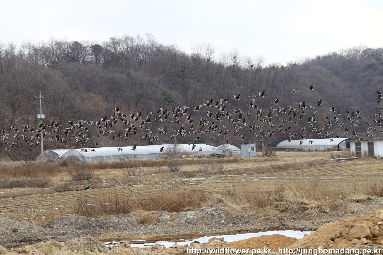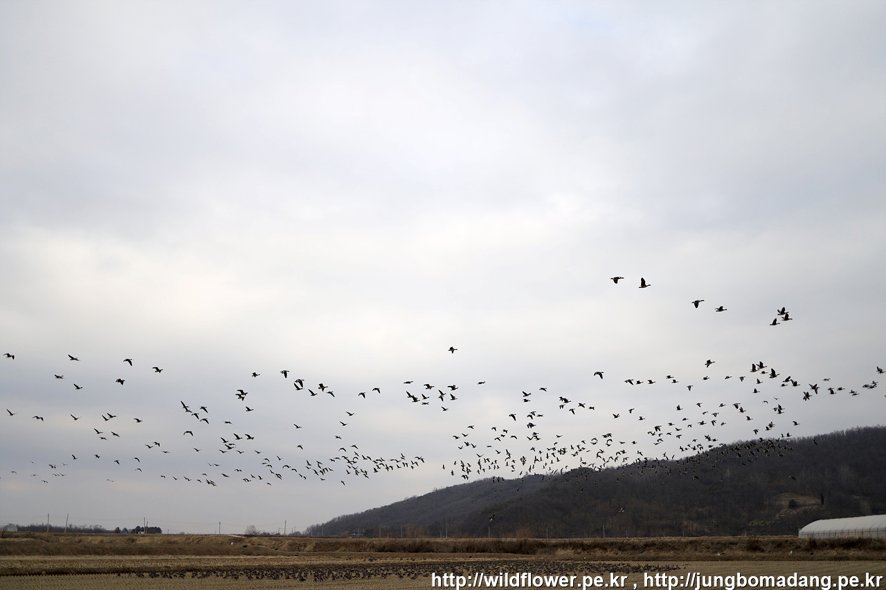 4. 쇠기러기 비상 - 처음에 많은 수의 쇠기러기가 푸드드득~ 소리로 비상하면서 계속 울음 소리가 들립니다.