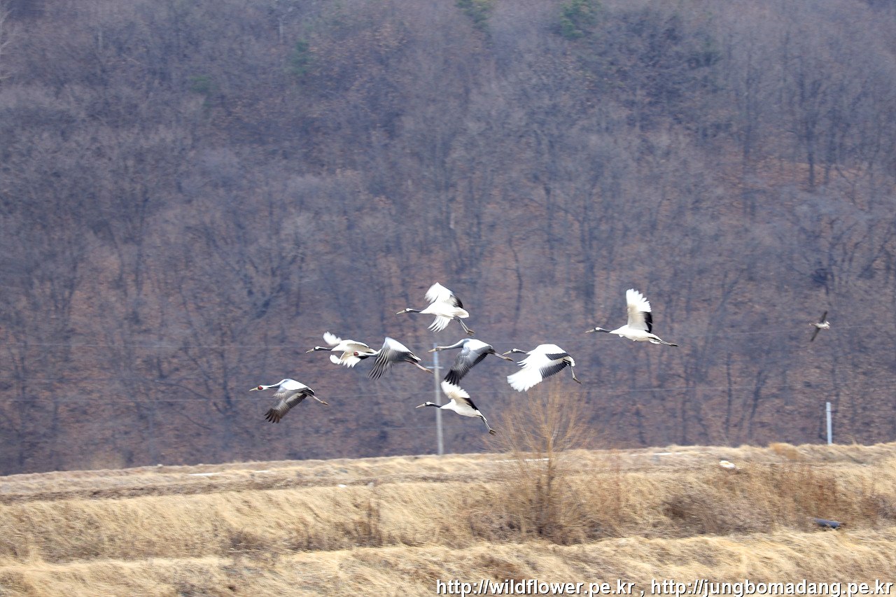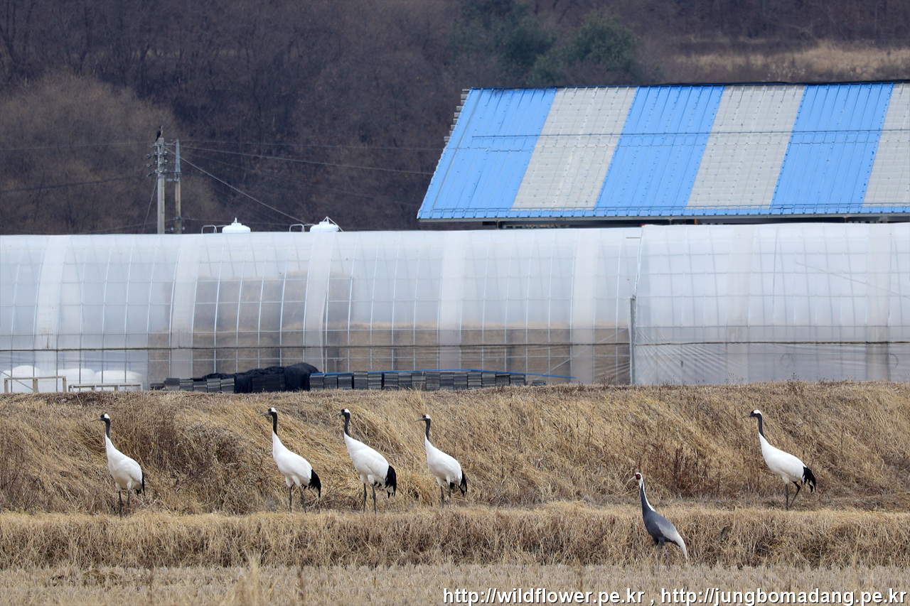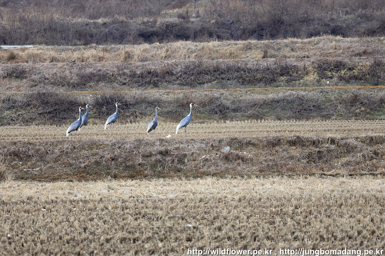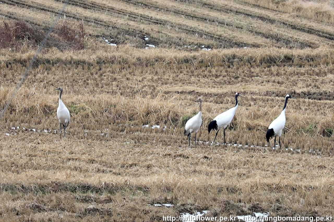 두루미 5마리가 전부 성조인 것으로 봐서 서로 가족은 아닌 것으로 확인 됩니다.