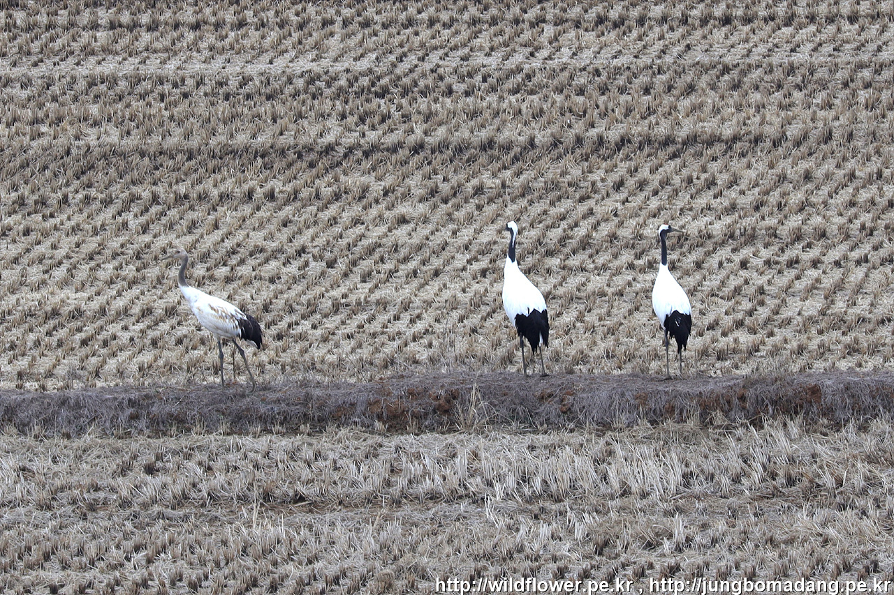 두루미 가족 (어린새, 어린새, 성조, 성조) - 두루미는 가까이 가서 볼 수 없기에 최대한 멀리서 망원 렌즈로 담아서 잘라내기 합니다.