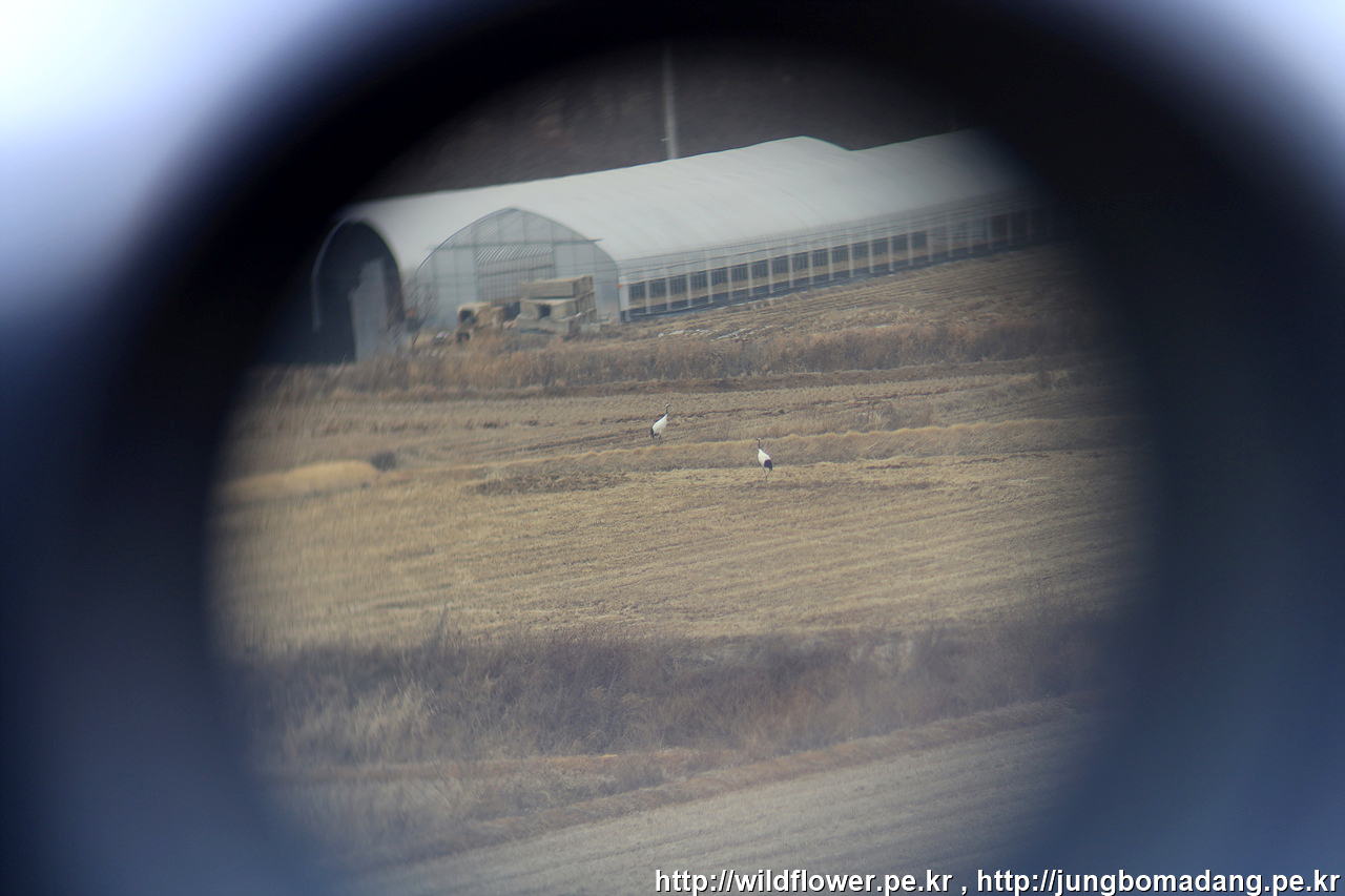 설치된 망원경으로 민통선에 있는 두루미를 봅니다. 두루미가 재두루미보다 훨씬 예민하기 때문에 가까이서 보기 어렵습니다.