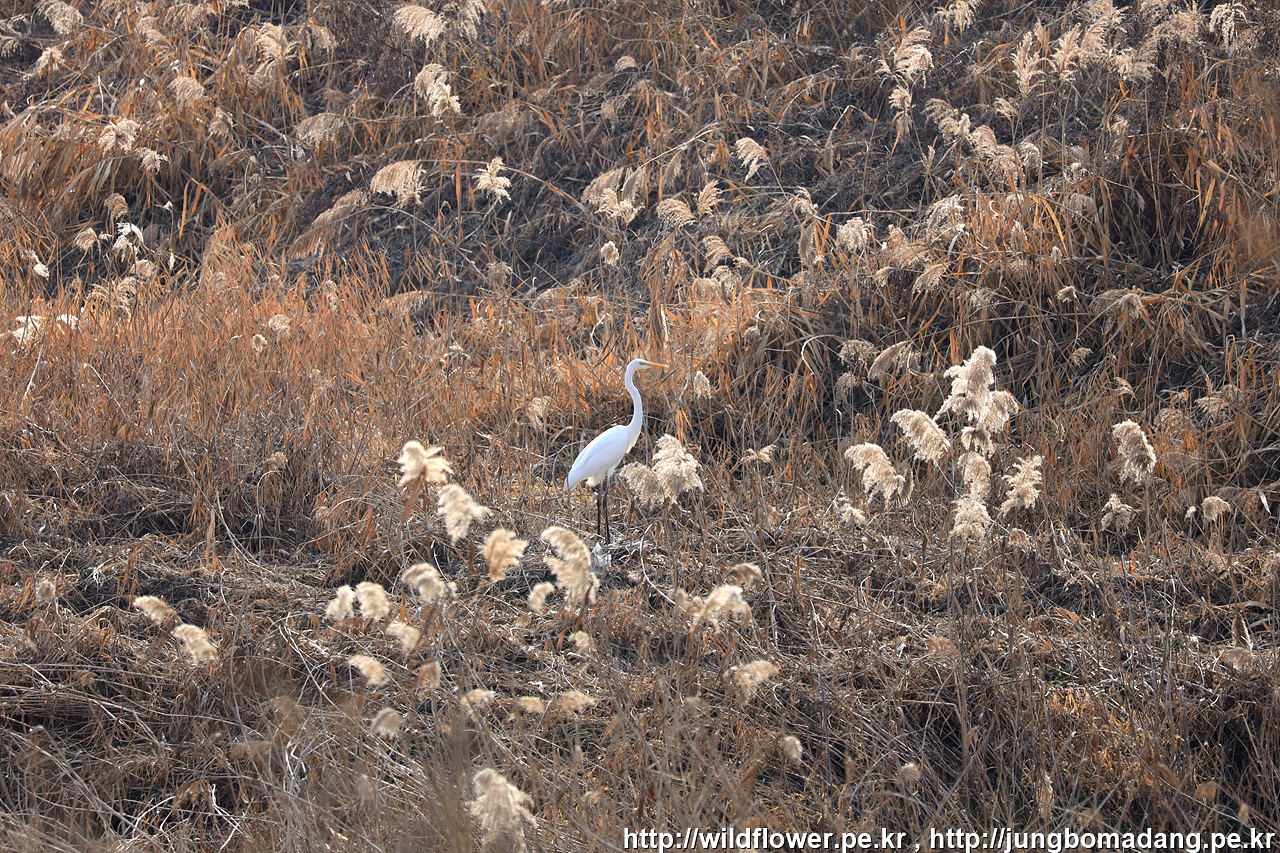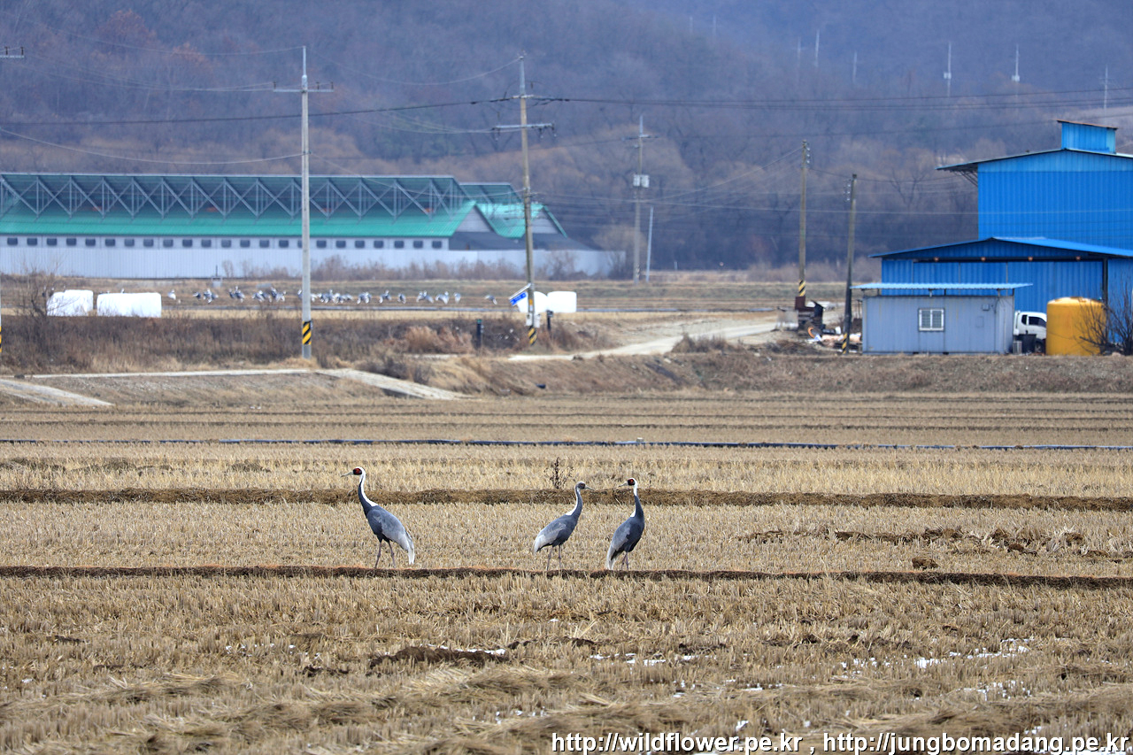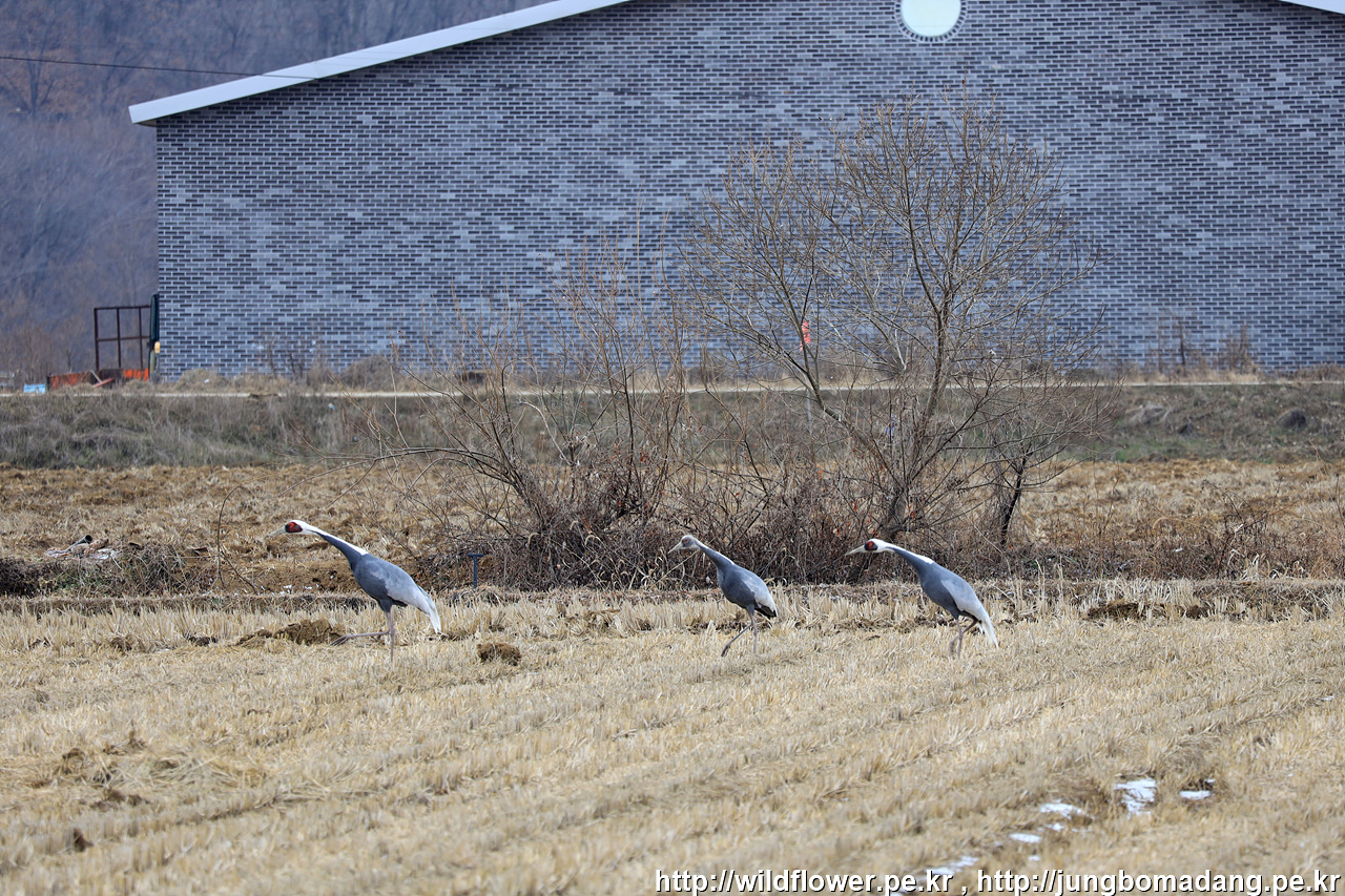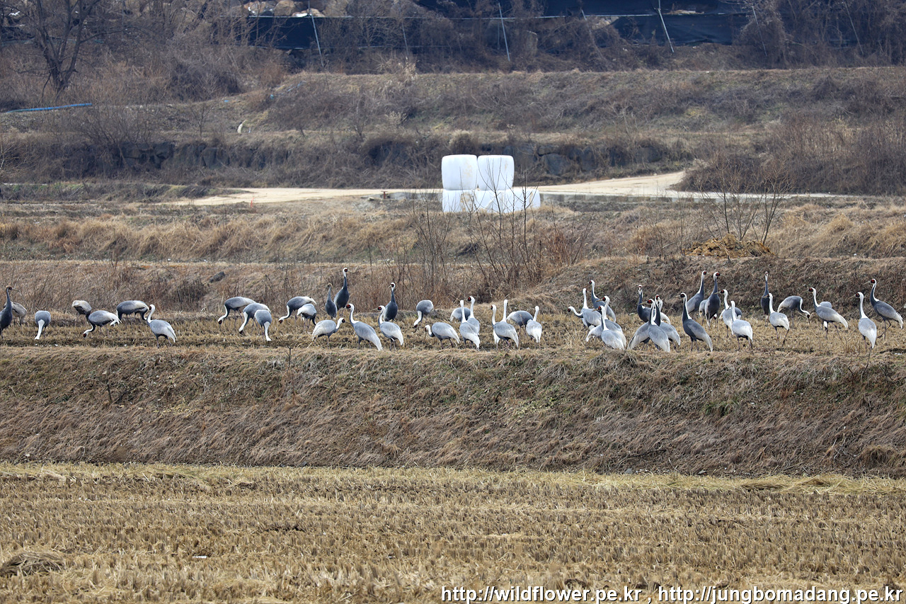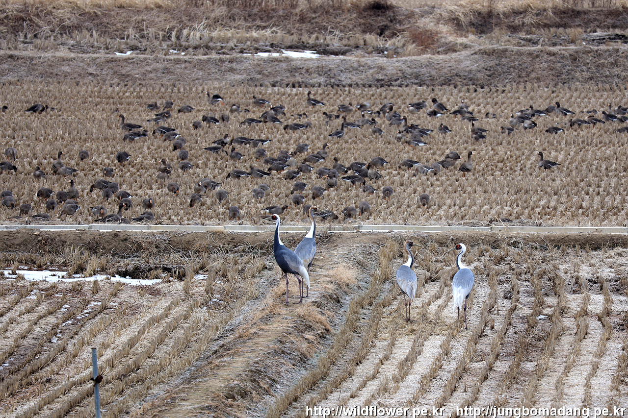 재두루미인 것 처럼 보이지만, 왜가리 한마리가 서 있습니다. 왜?