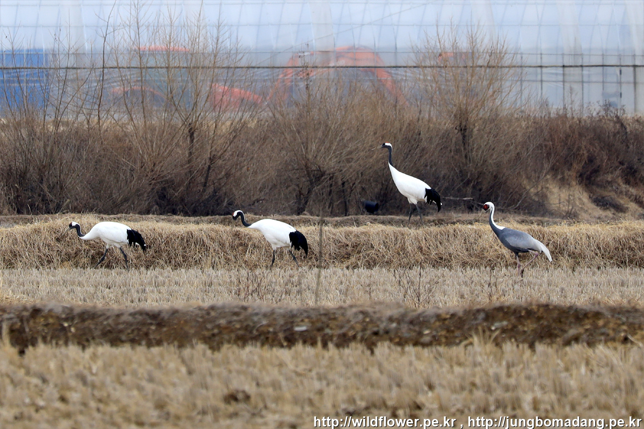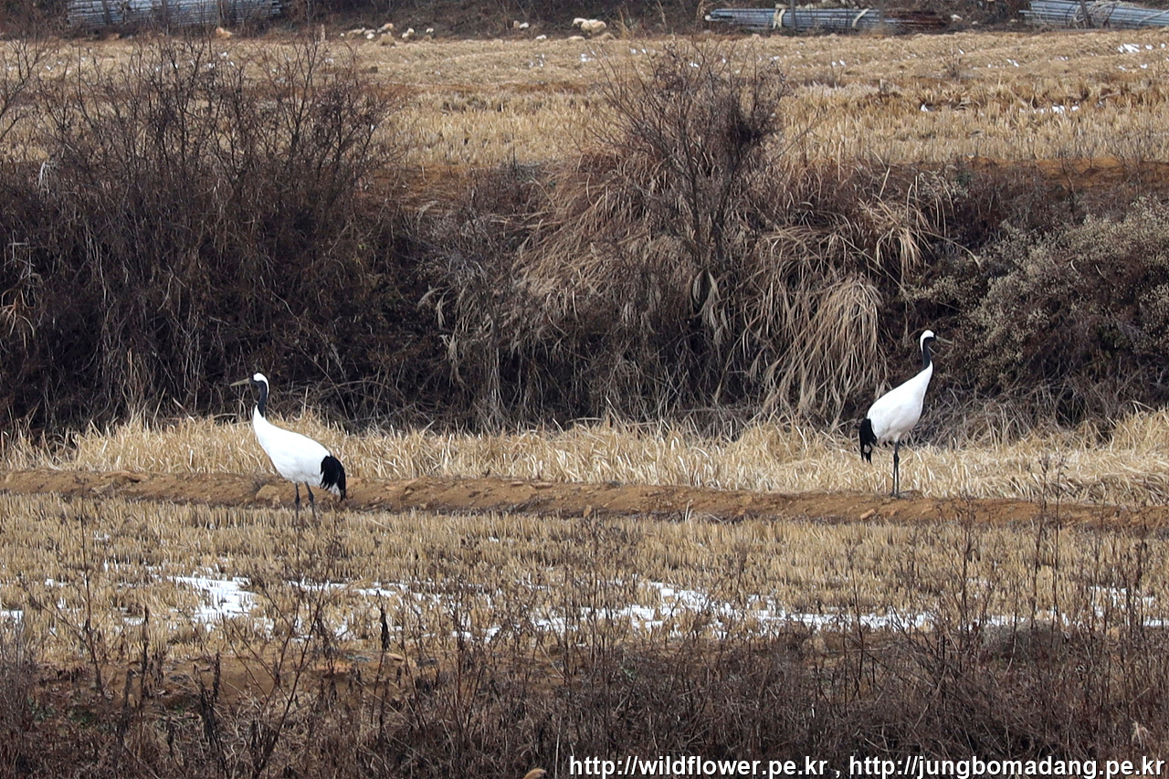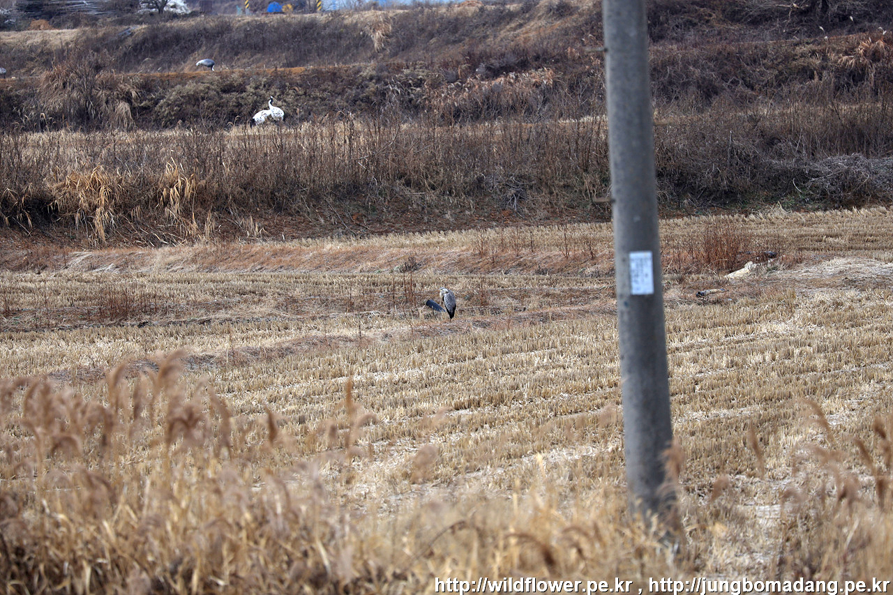 재두루미인 것 처럼 보이지만, 왜가리 한마리가 서 있습니다. 왜?