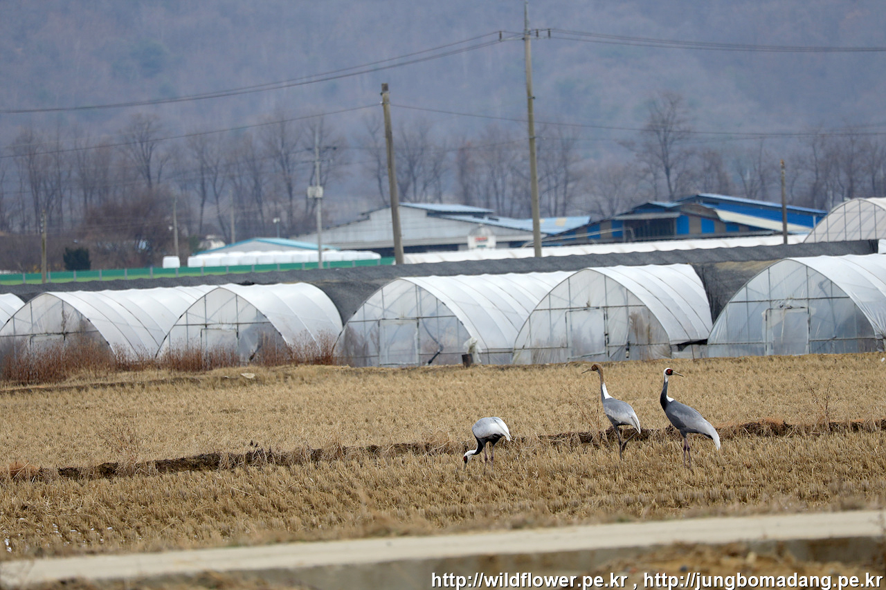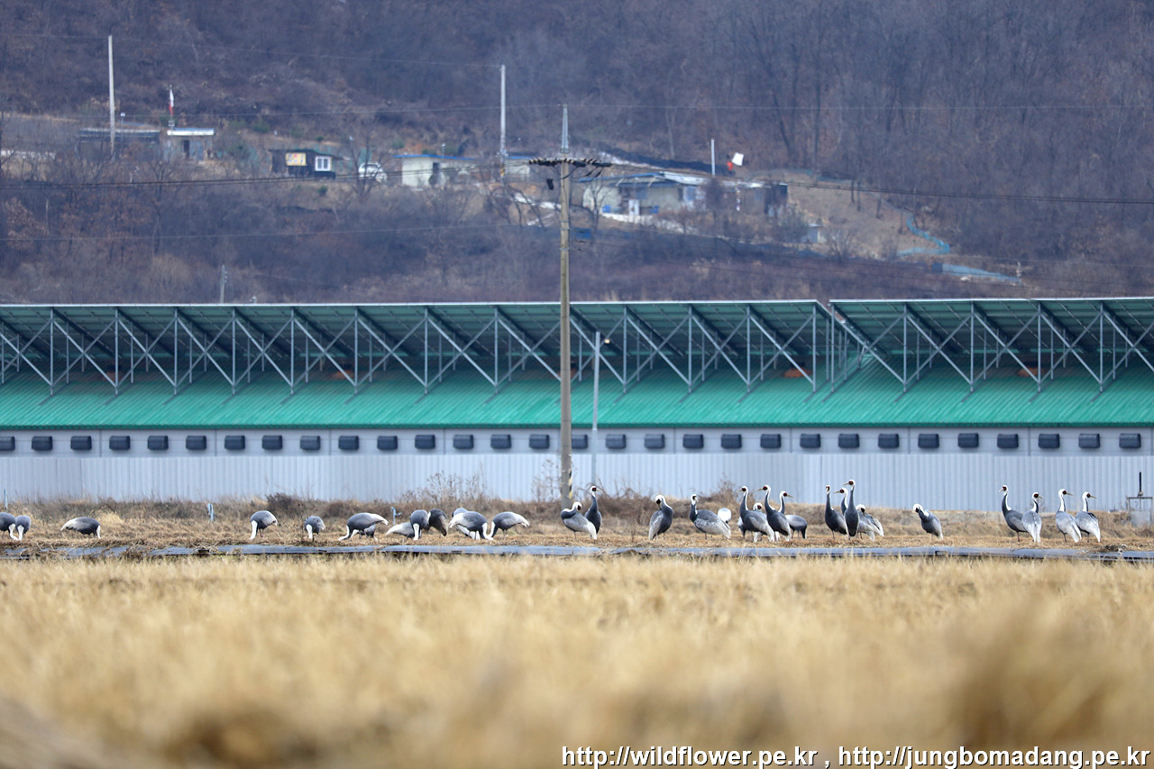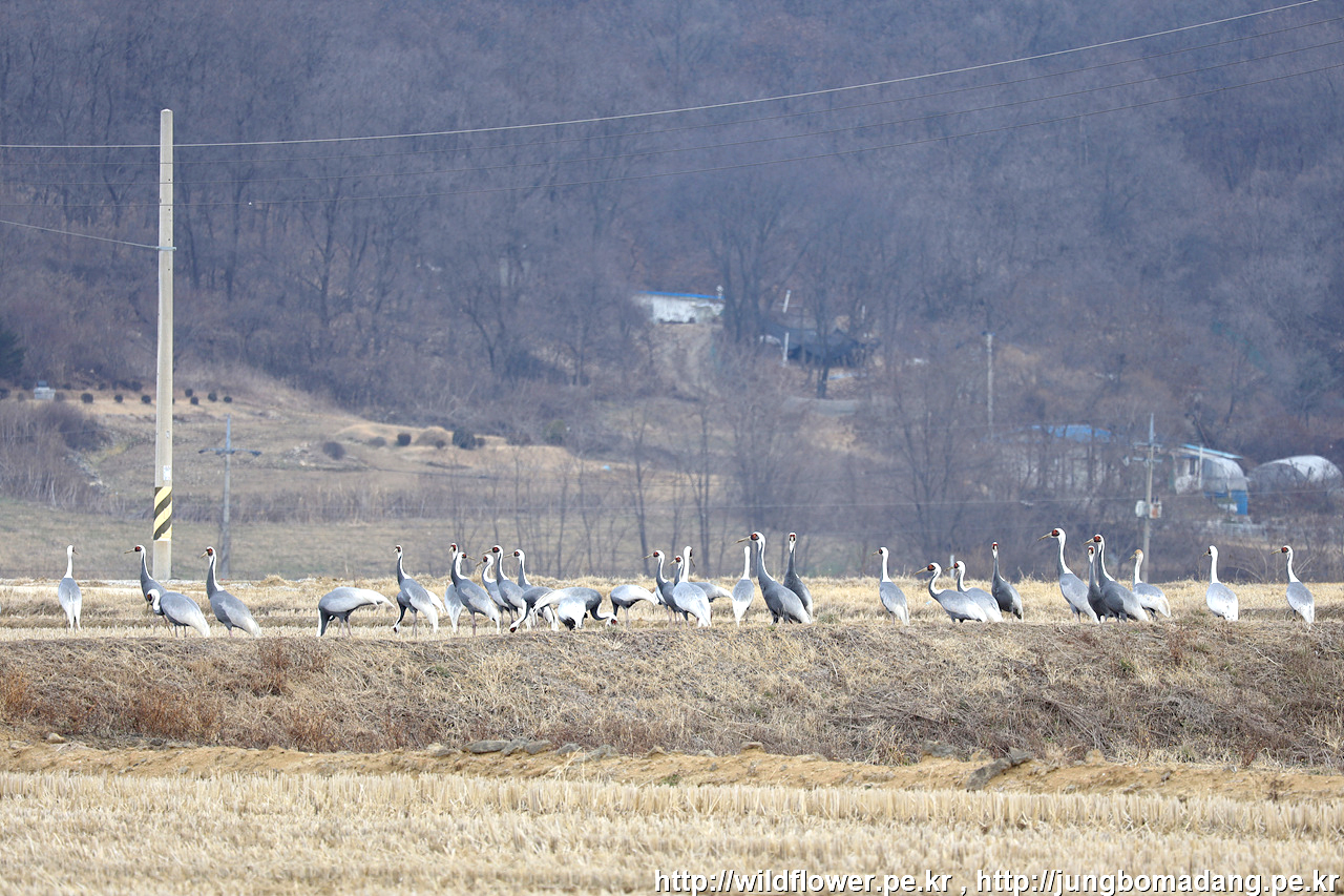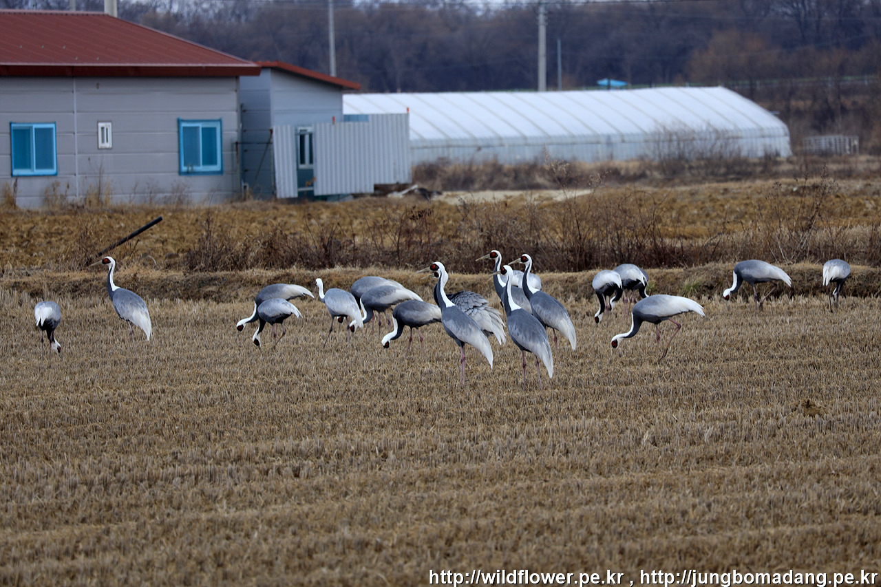 재두루미인 것 처럼 보이지만, 왜가리 한마리가 서 있습니다. 왜?