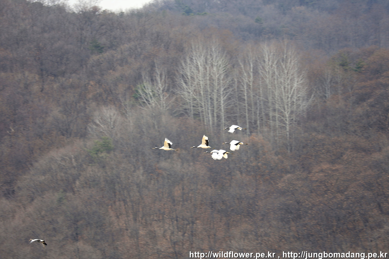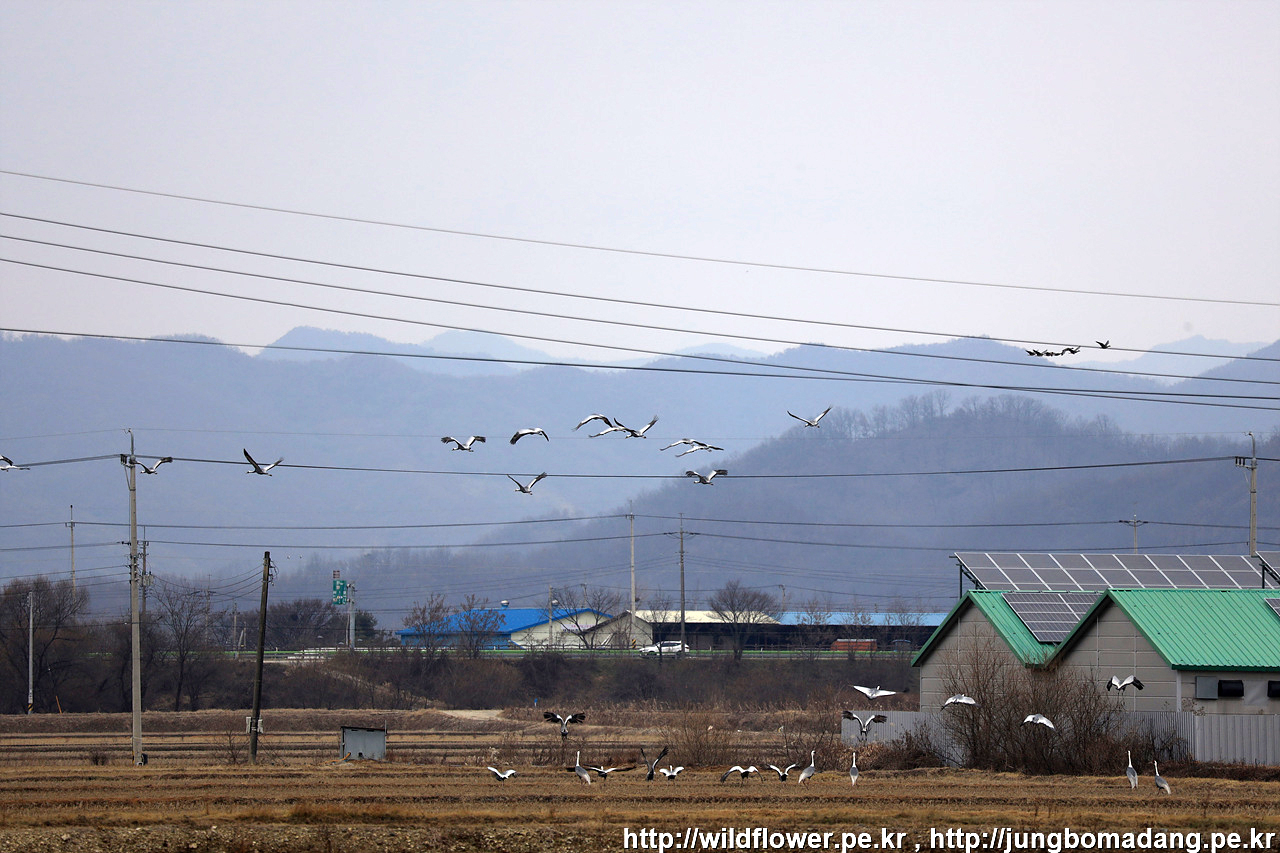 두루미 5마리가 전부 성조인 것으로 봐서 서로 가족은 아닌 것으로 확인 됩니다.