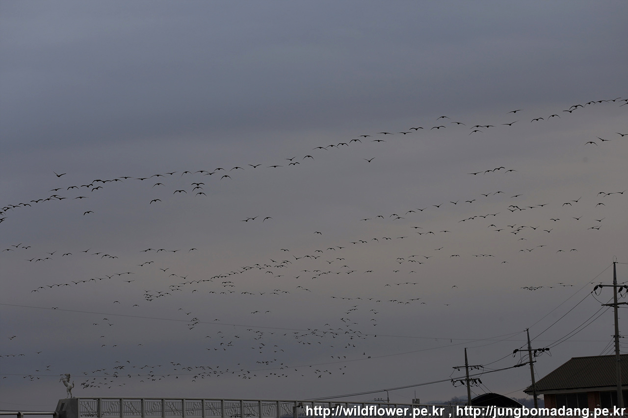 4. 쇠기러기 비상 - 처음에 많은 수의 쇠기러기가 푸드드득~ 소리로 비상하면서 계속 울음 소리가 들립니다.