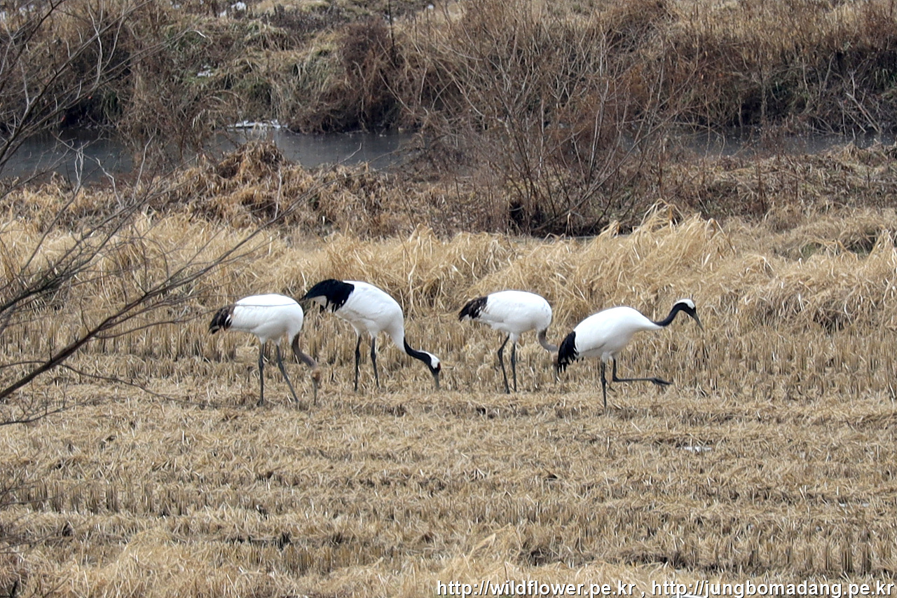 두루미 가족 (어린새, 어린새, 성조, 성조) - 두루미는 가까이 가서 볼 수 없기에 최대한 멀리서 망원 렌즈로 담아서 잘라내기 합니다.
