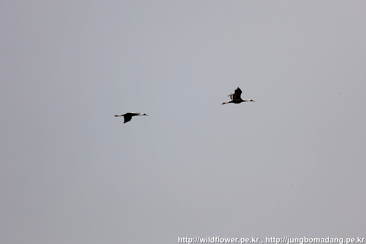 3. 두루미, 재두루미 울음 소리 - 처음에 두루미가 우는 데 중간에 날아가는 재두루미가 주기적으로 두루~ 두루~ 우는 것을 들으실 수 있습니다.
